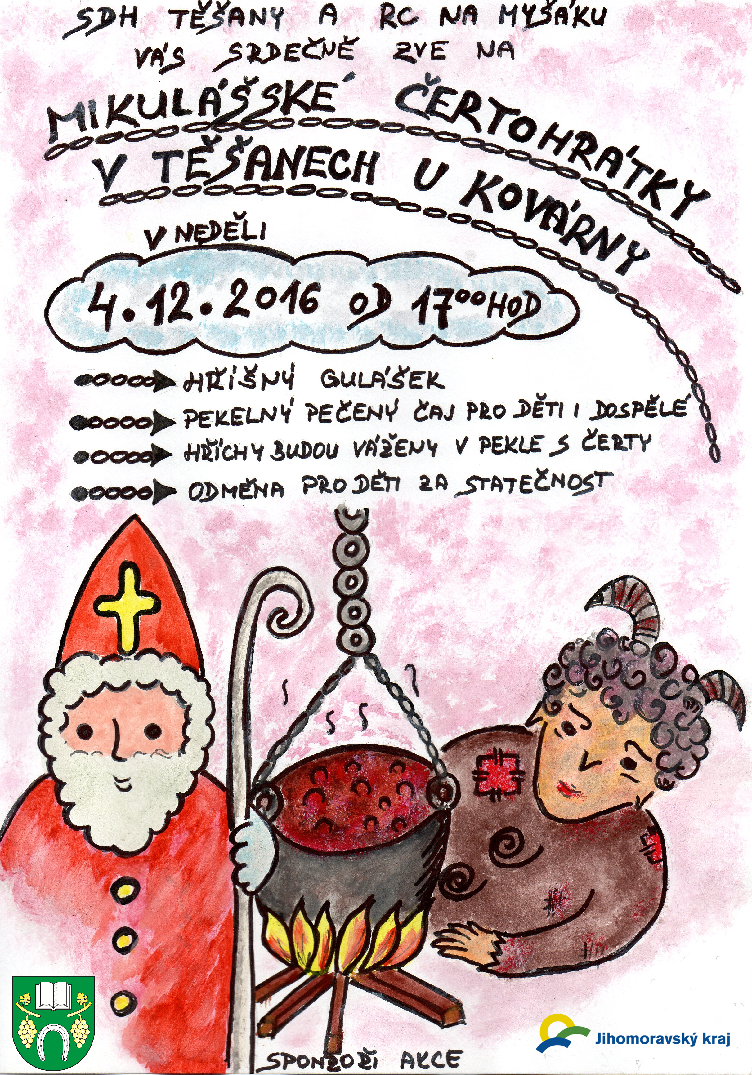 Zveřejněno 23.11.2016SDH Těšany a RC Na Myšáku Vás srdečně zve na Mikulášské čertohrátky v Těšanech u Kovárny.