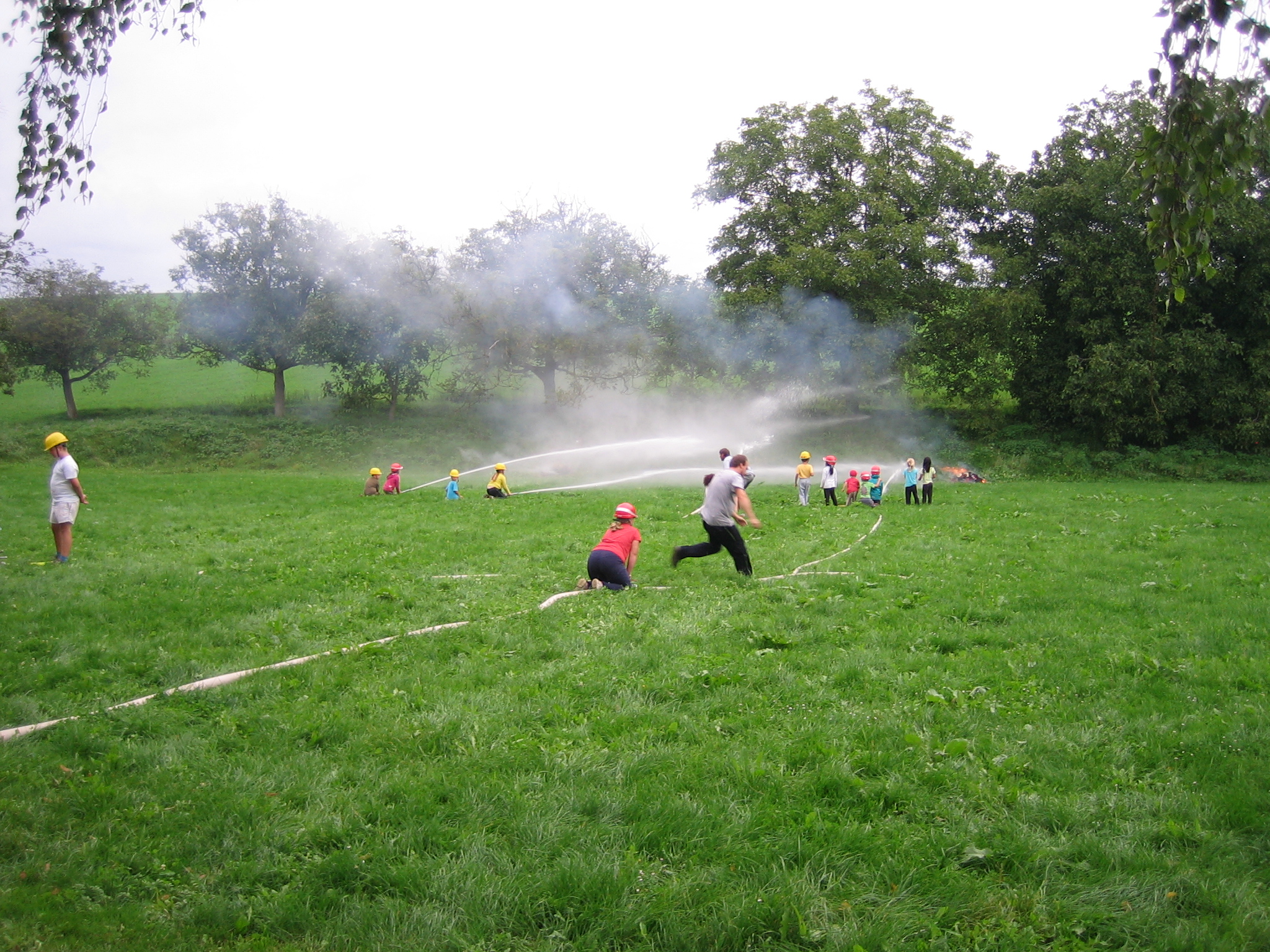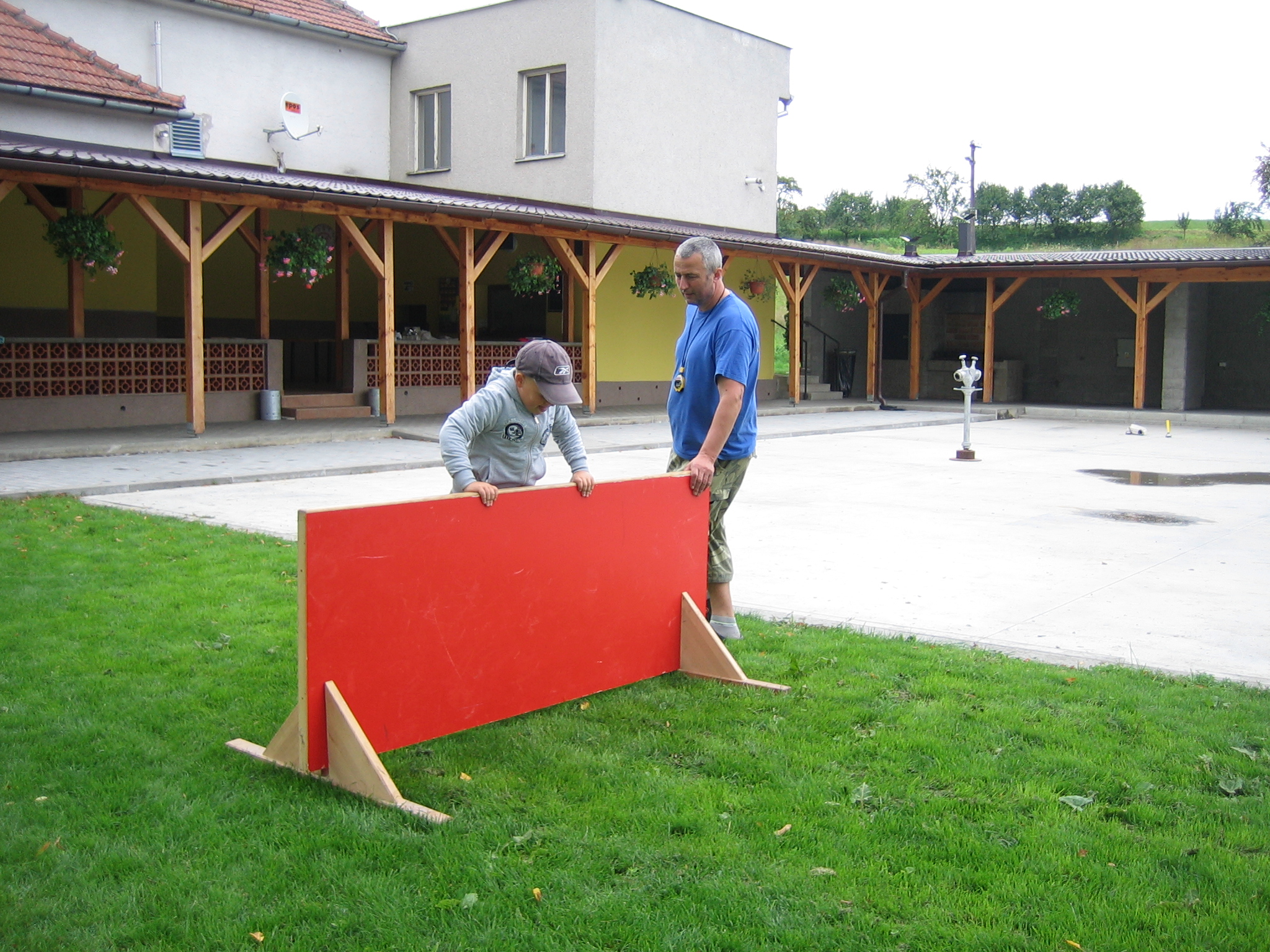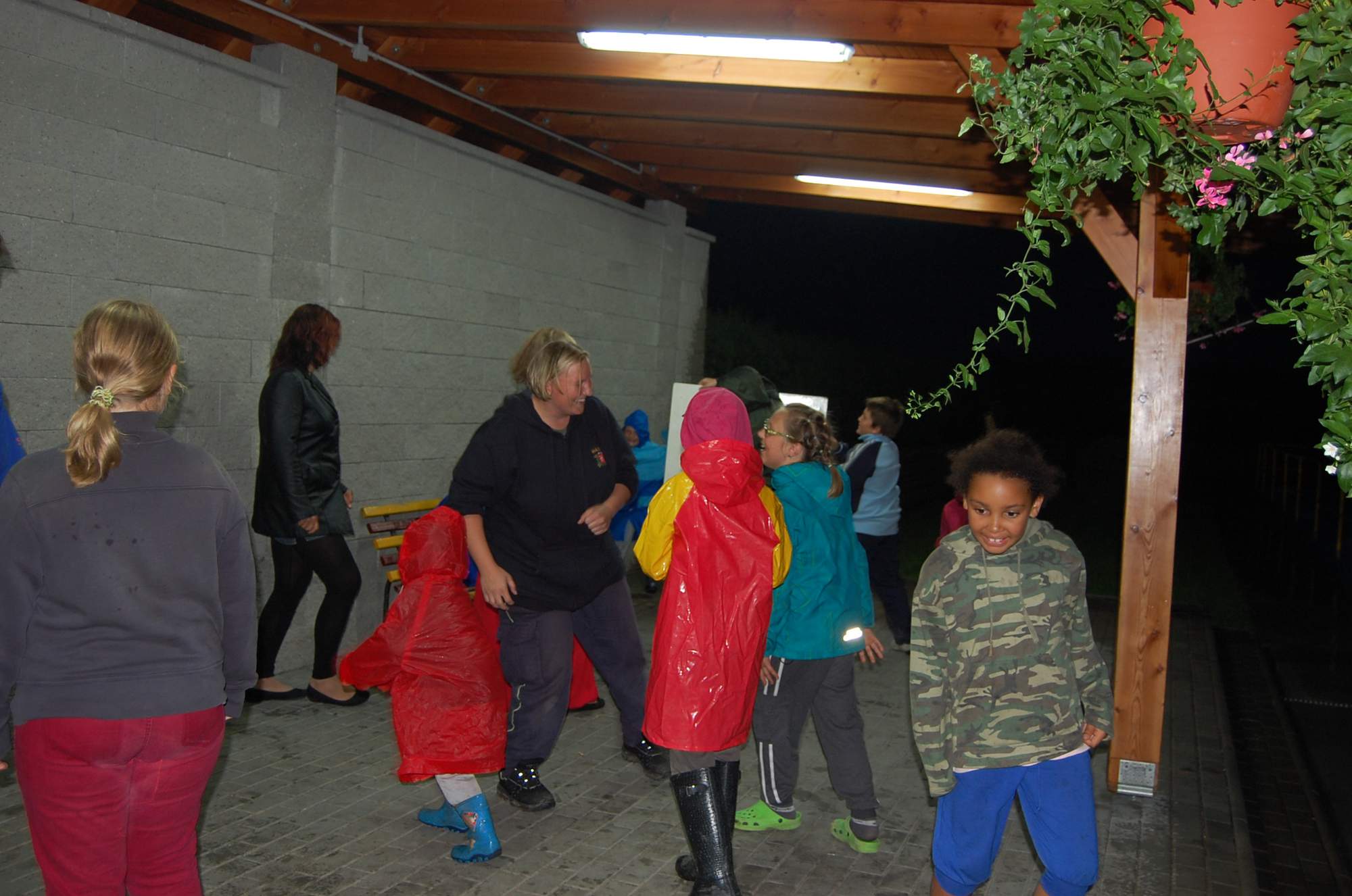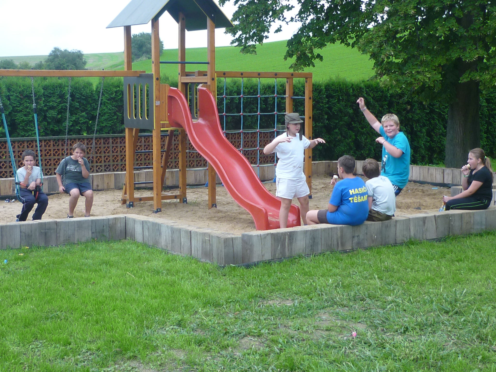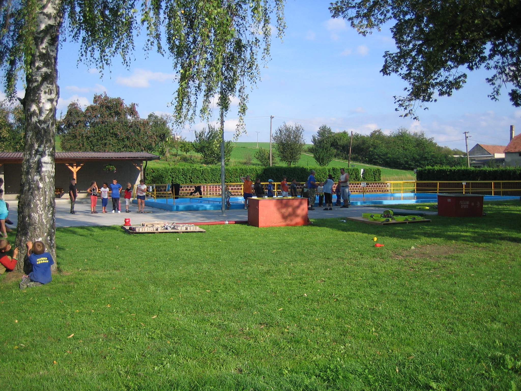 V sobotu - čtvrtý den soustředění - jsme spolu s místními mladými hasiči připravili různé soutěže děti - byl to den rozloučení s prázdninami. Samosebou jsme se soutěží i účastnili. Vyzkoušeli jsme si ještě chůdy, hod na hasiče, hašení domečku, opičí dráhu, závody v pytlích a spousty dalších her. Někteří z nás ale dopoledne trávili trochu jinak - jistě zajímavým výletem po okolí, neboť se museli jen pomocí buzoly vrátit do areálu z místa, kam byli odvezeni se zavázanýma očima. Večerní šou s tancem trochu hatil vytrvalý a hustý déšť, který byl ovšem nádherným tichým doprovodem posledního velkého zážitku soustředění - noční stezky odvahy. Všichni - i ti nejmenší - stezku zvládli na výbornou a sladké odměně v cíli následoval klidný spánek.