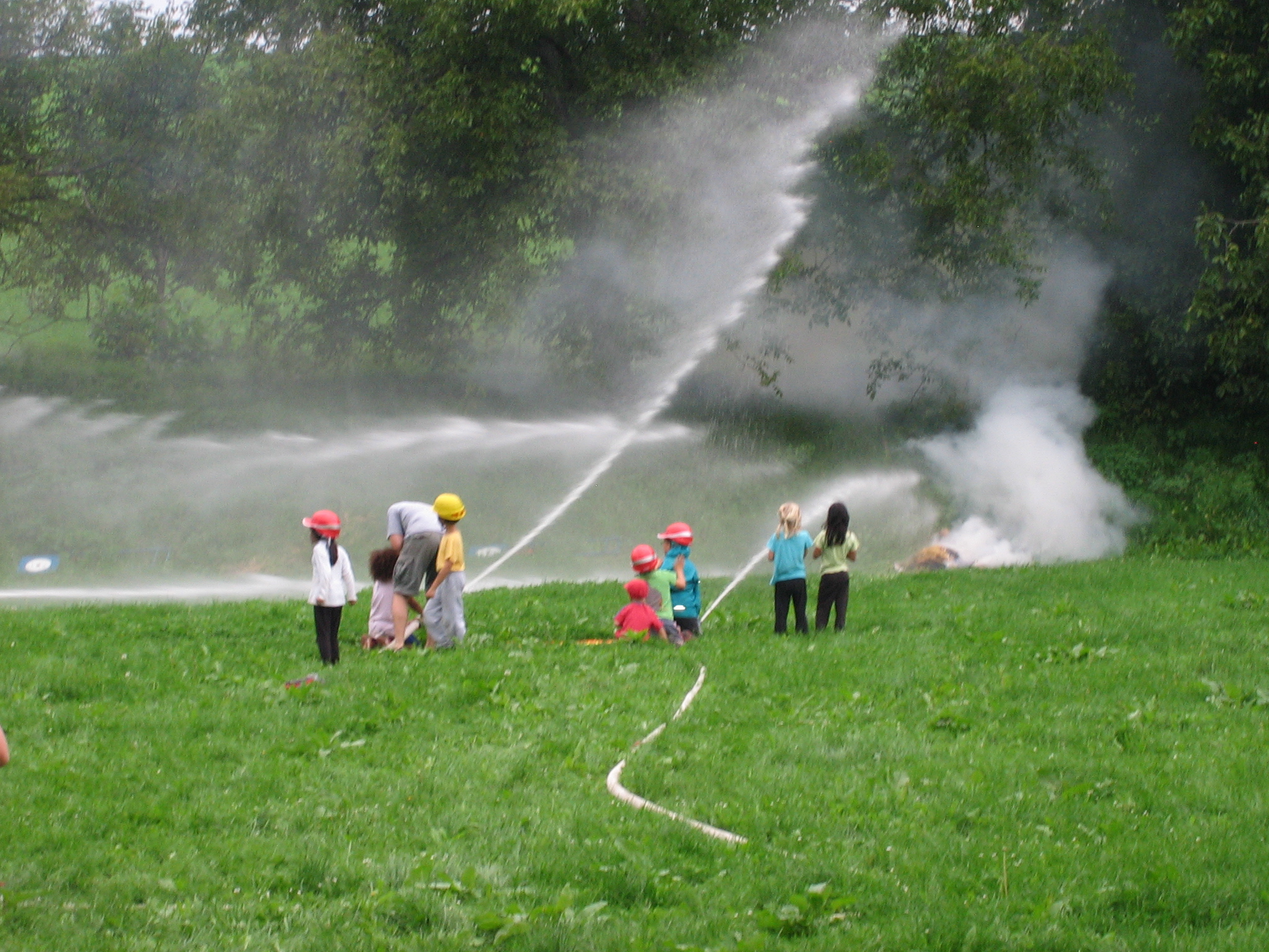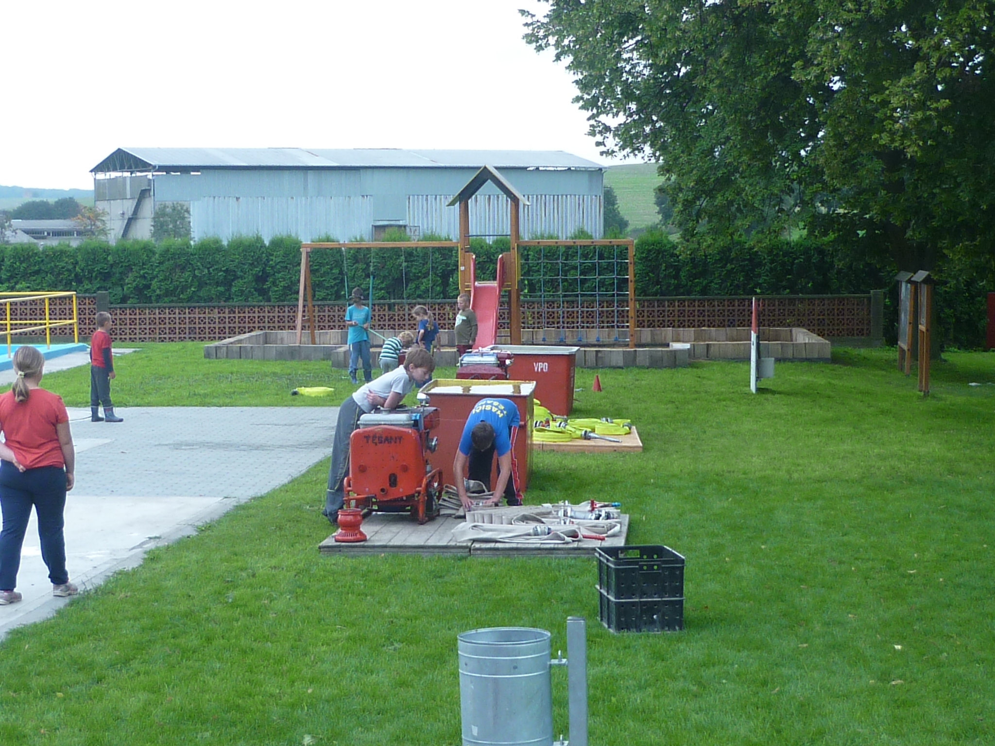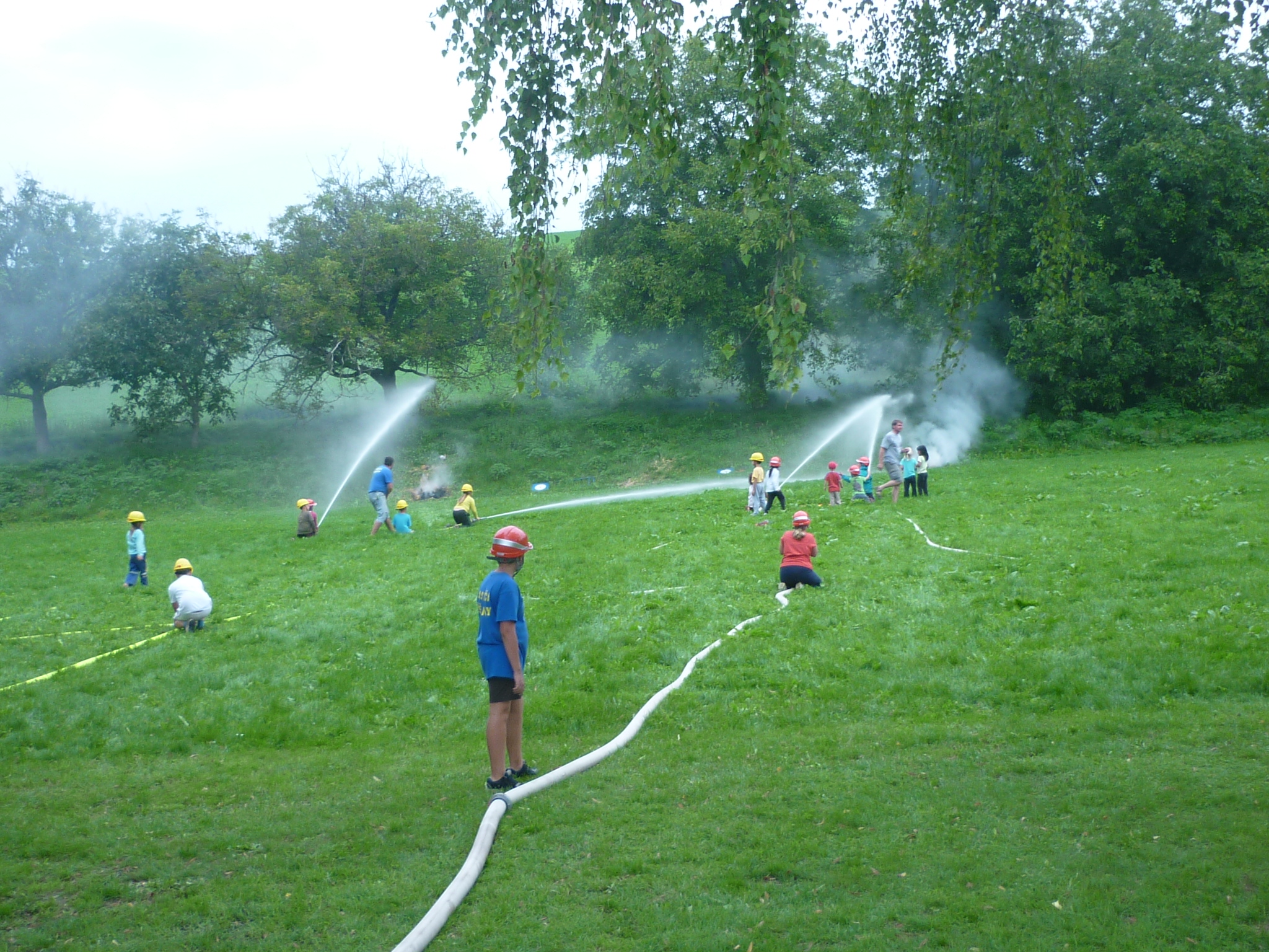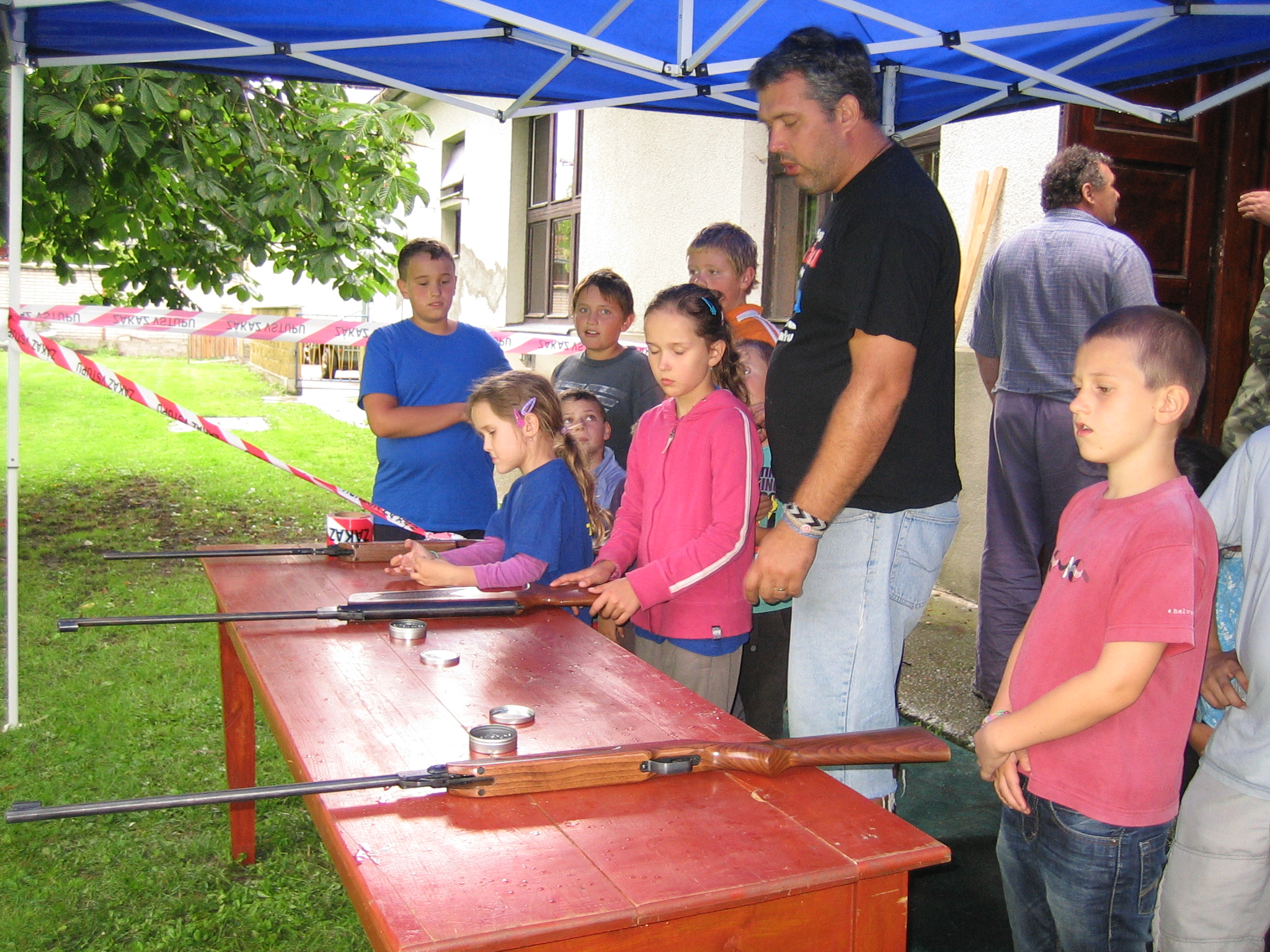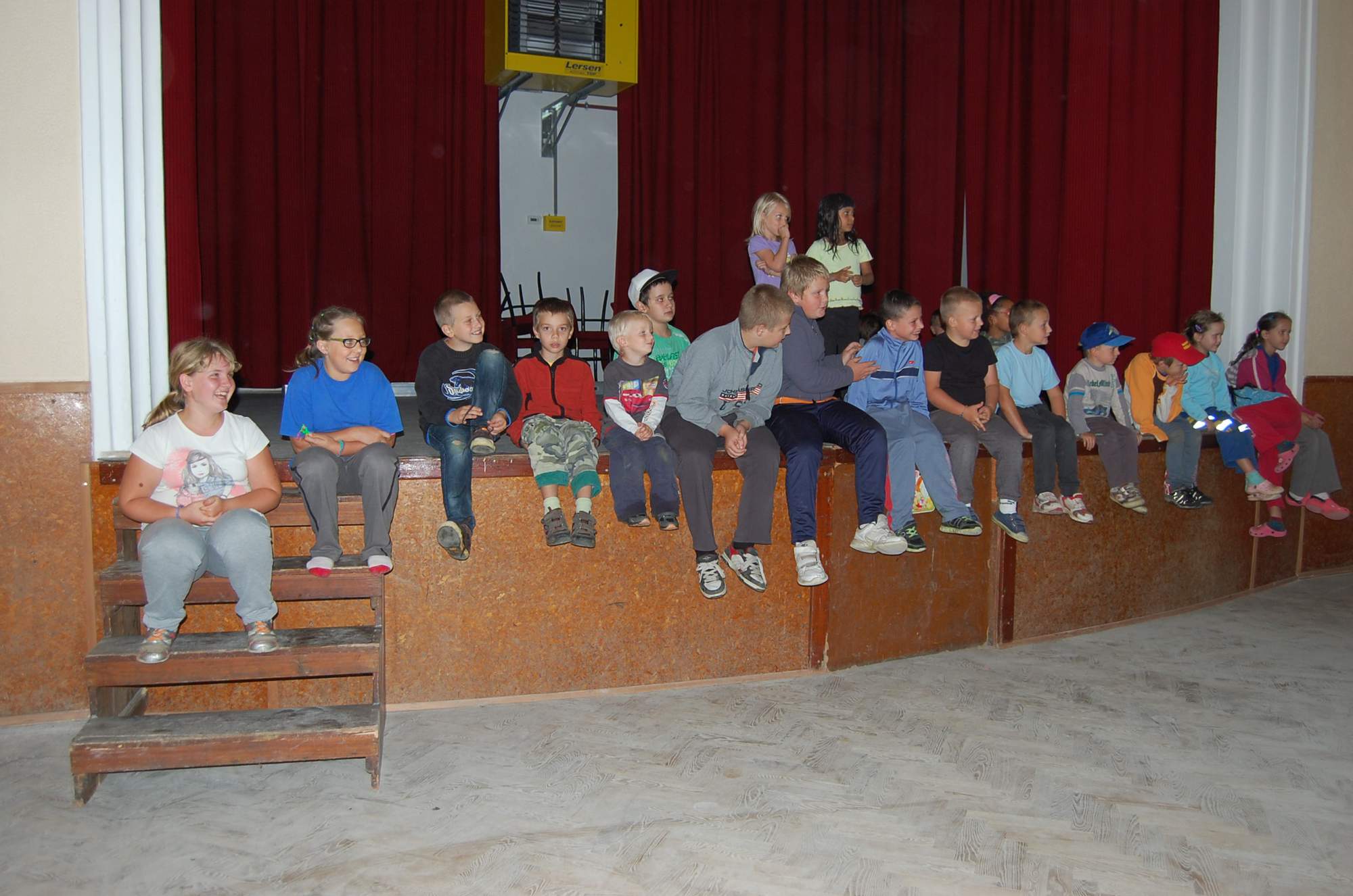 V sobotu - čtvrtý den soustředění - jsme spolu s místními mladými hasiči připravili různé soutěže děti - byl to den rozloučení s prázdninami. Samosebou jsme se soutěží i účastnili. Vyzkoušeli jsme si ještě chůdy, hod na hasiče, hašení domečku, opičí dráhu, závody v pytlích a spousty dalších her. Někteří z nás ale dopoledne trávili trochu jinak - jistě zajímavým výletem po okolí, neboť se museli jen pomocí buzoly vrátit do areálu z místa, kam byli odvezeni se zavázanýma očima. Večerní šou s tancem trochu hatil vytrvalý a hustý déšť, který byl ovšem nádherným tichým doprovodem posledního velkého zážitku soustředění - noční stezky odvahy. Všichni - i ti nejmenší - stezku zvládli na výbornou a sladké odměně v cíli následoval klidný spánek.