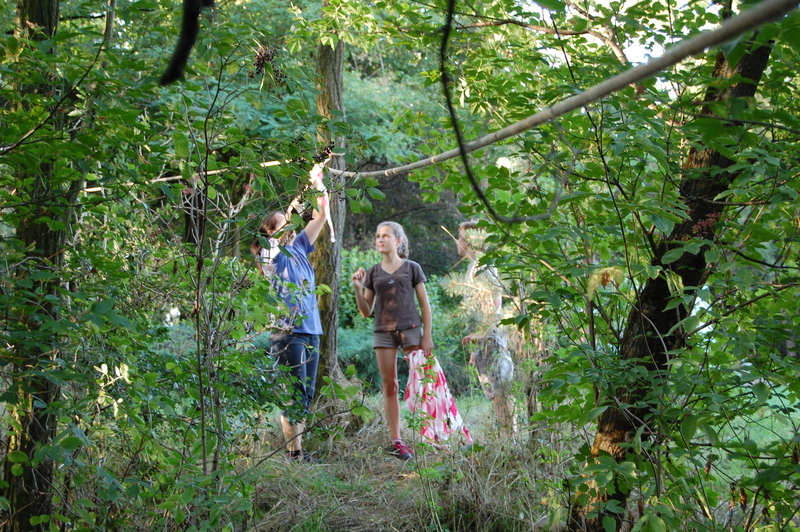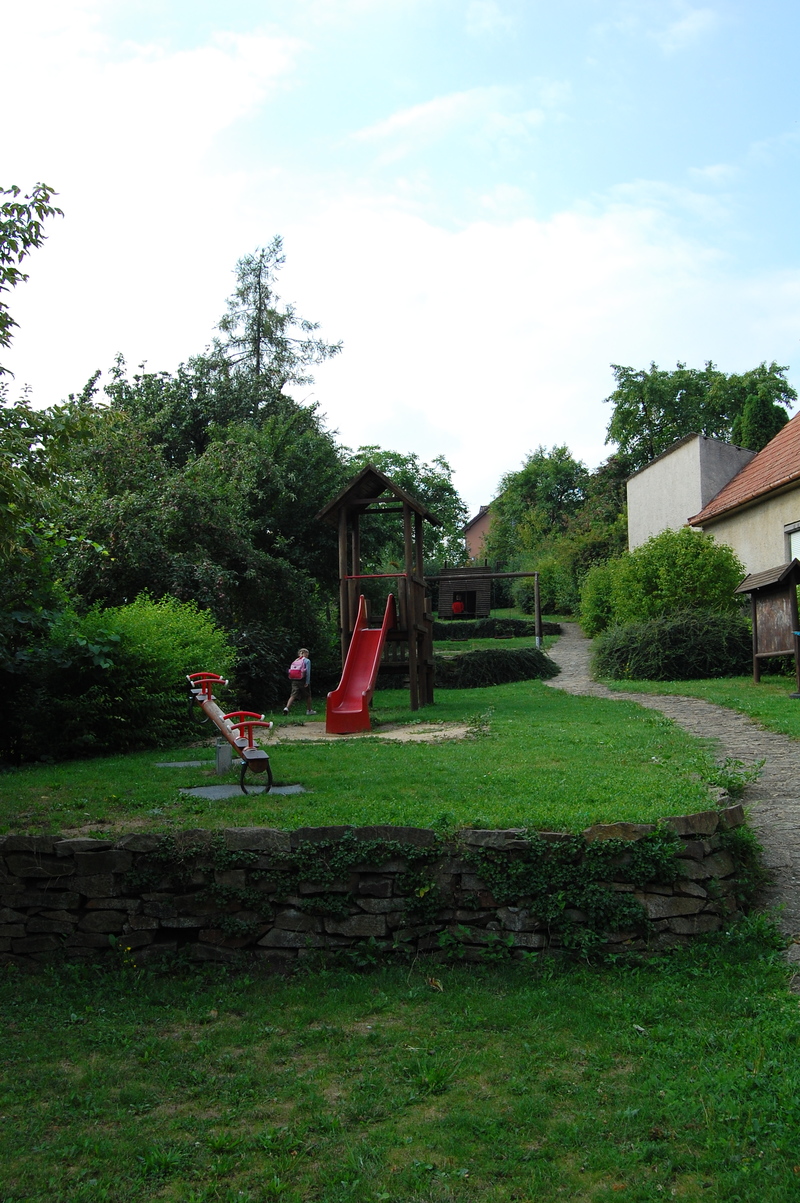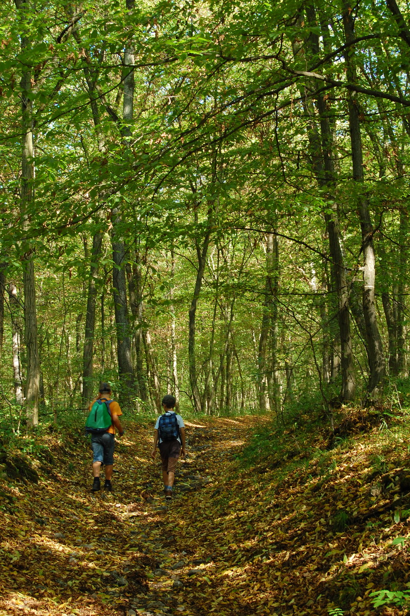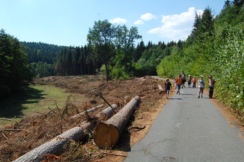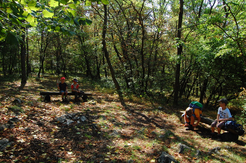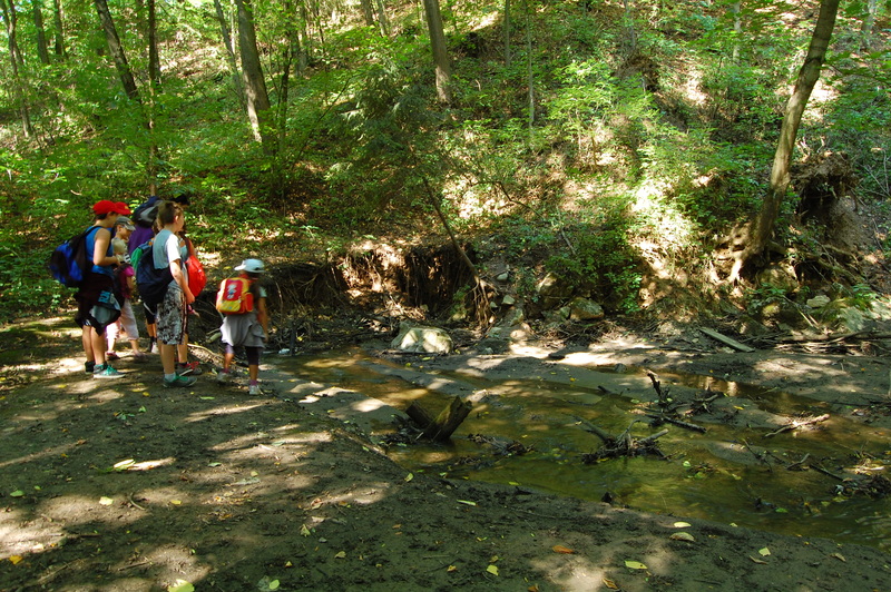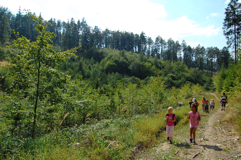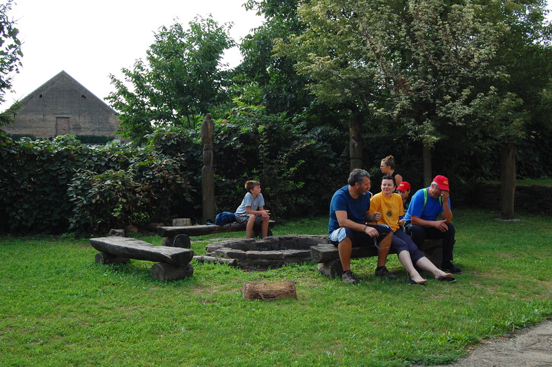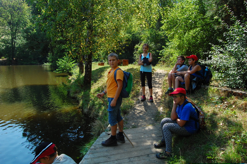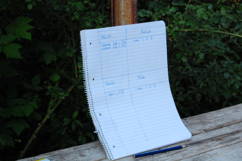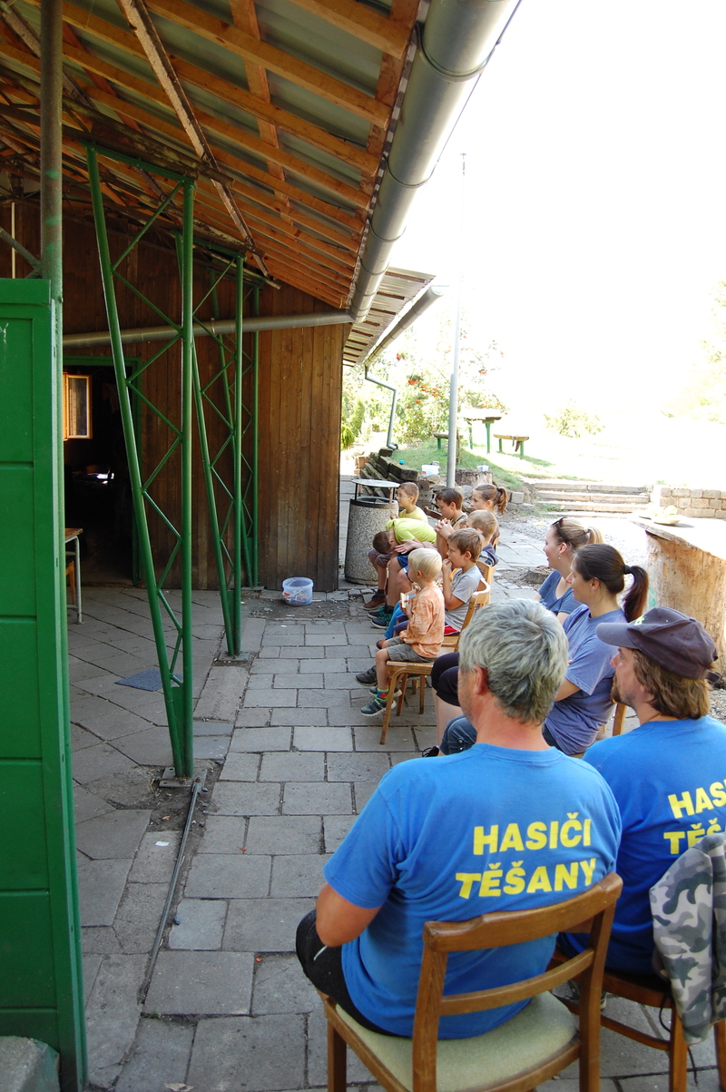 Po přejezdu do vesničky Mokrá-Horákov vydali jsme se po turistické trase směrem k Hostěnicím, kde se letos bude odehrávat prvá část Plamene – závody požárnické všestrannosti (ZPV). Stihli jsme i zkontrolovat, zda voda v hostěnickém propadání opravdu propadá. Propadá. Naštěstí nepropadl nikdo z nás a tak jsme v horkém dni mohli při konzumaci zmrzliny obdivovat třeba i kudlanku nábožnou. Z Hostěnic vedla ještě dlouhá cesta až na chatu Jelenici, kterou nám místní skauti ochotně na poledne propůjčili jako místo našeho oběda. Všichni jsme se podepsali do jejich návštěvní knihy a dle instrukcí se chodili střídavě napít do jedné či druhé studánky, abychom konečně vyřešili záhadu ve které je chutnější voda. Protože jsme skutečně zodpovědní, podařilo se nám i otestovat voděodolnost bot a ponožek. Netěsní. A chutnější voda je ze studánky spodní.