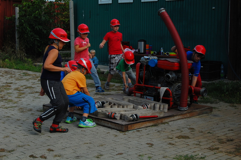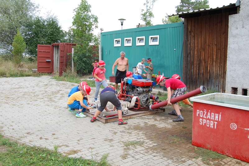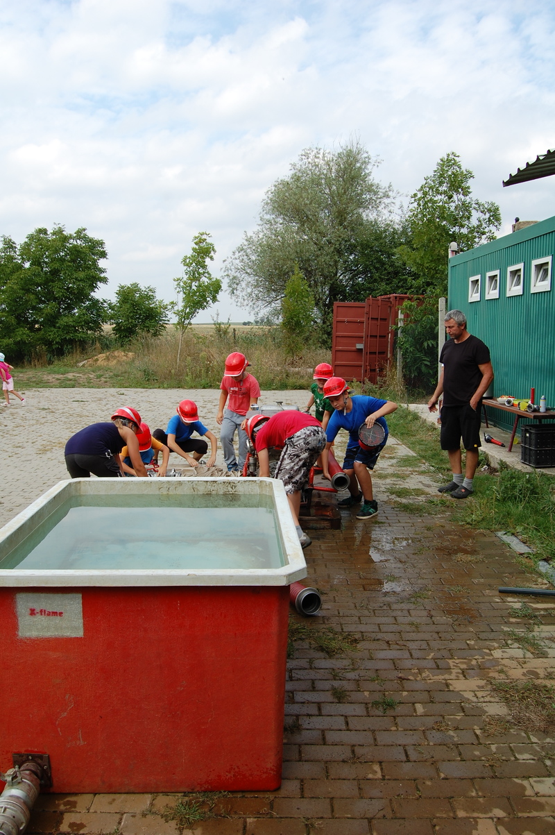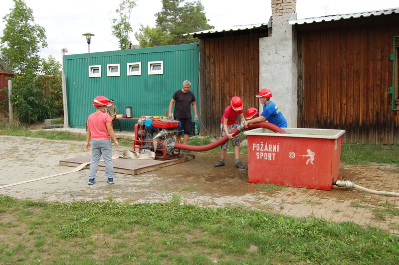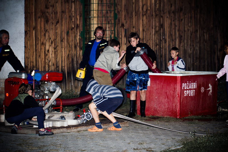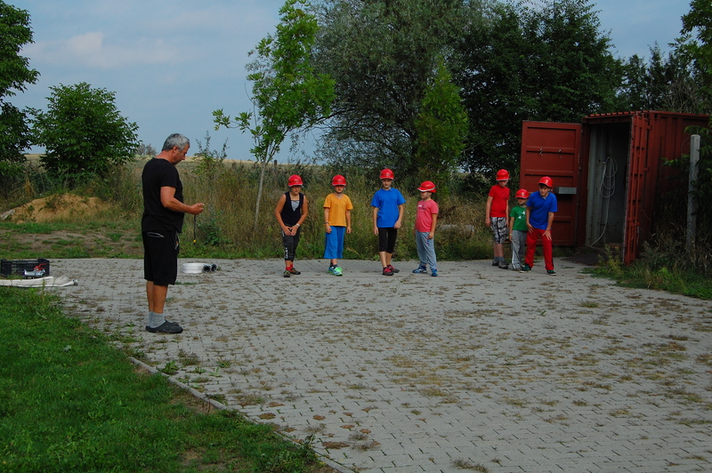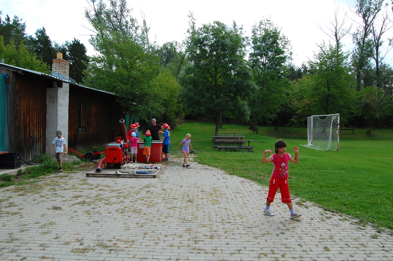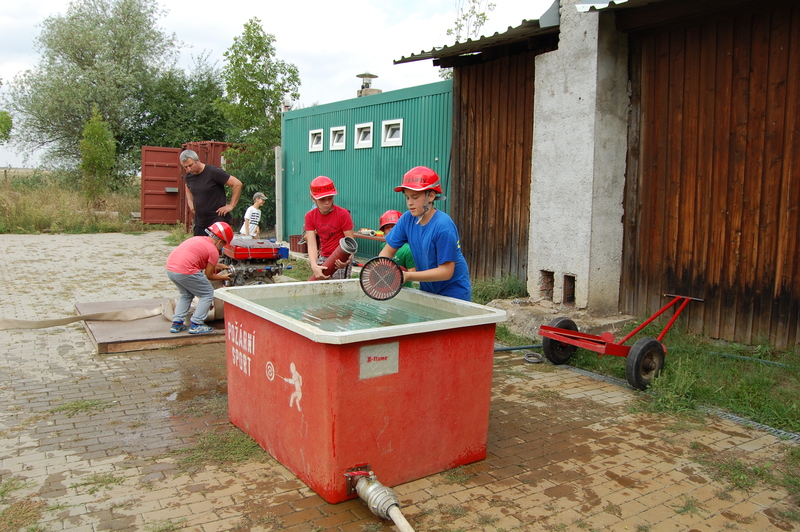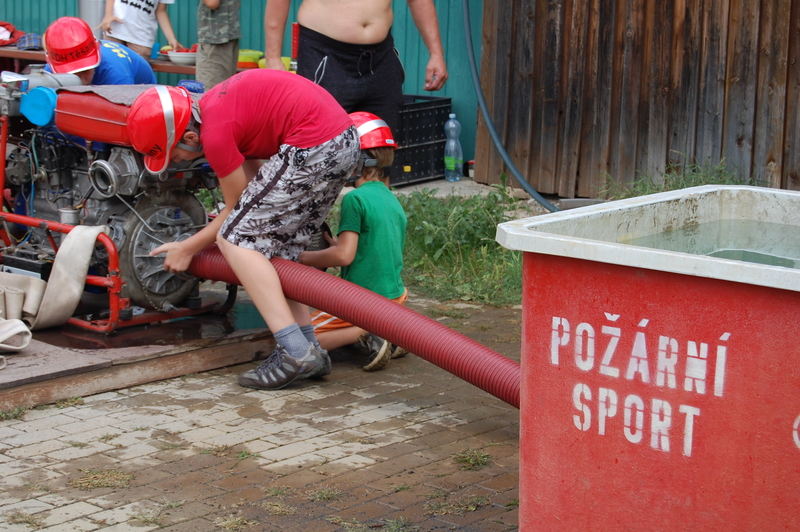 Protože nám to s těmi hadicemi moc nejde a protože družstvo mladších je kompletně v novém složení (někteří ještě dokonce nikdy nezávodili), celý den jsme věnovali požárnímu útoku. Areál v Nesvačilce mají místní hasiči skvěle připravený, takže nás nic nezdržovalo a útoků jsme udělali nepočítaně. Odpoledne nás děti překvapili báječným kotlíkovým gulášem, na kteří dospěláci jen tak trochu dohlíželi. Pod Aniččiným vedením byl ten den ještě úspěšně otevřen koloniál „u Hvězdy“ a s nově objevenou měnou Šp začalo obchodovat celé široké okolí. Opustil nás Čmelda – Aniččin ochočený čmelák o kterého se vzorně děti staraly.