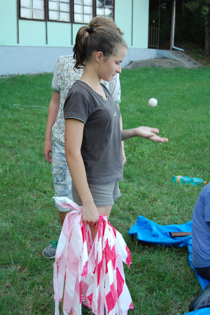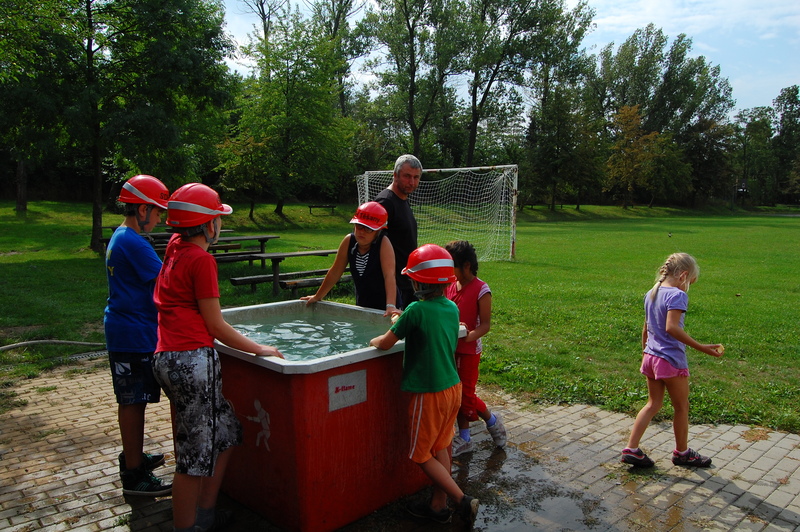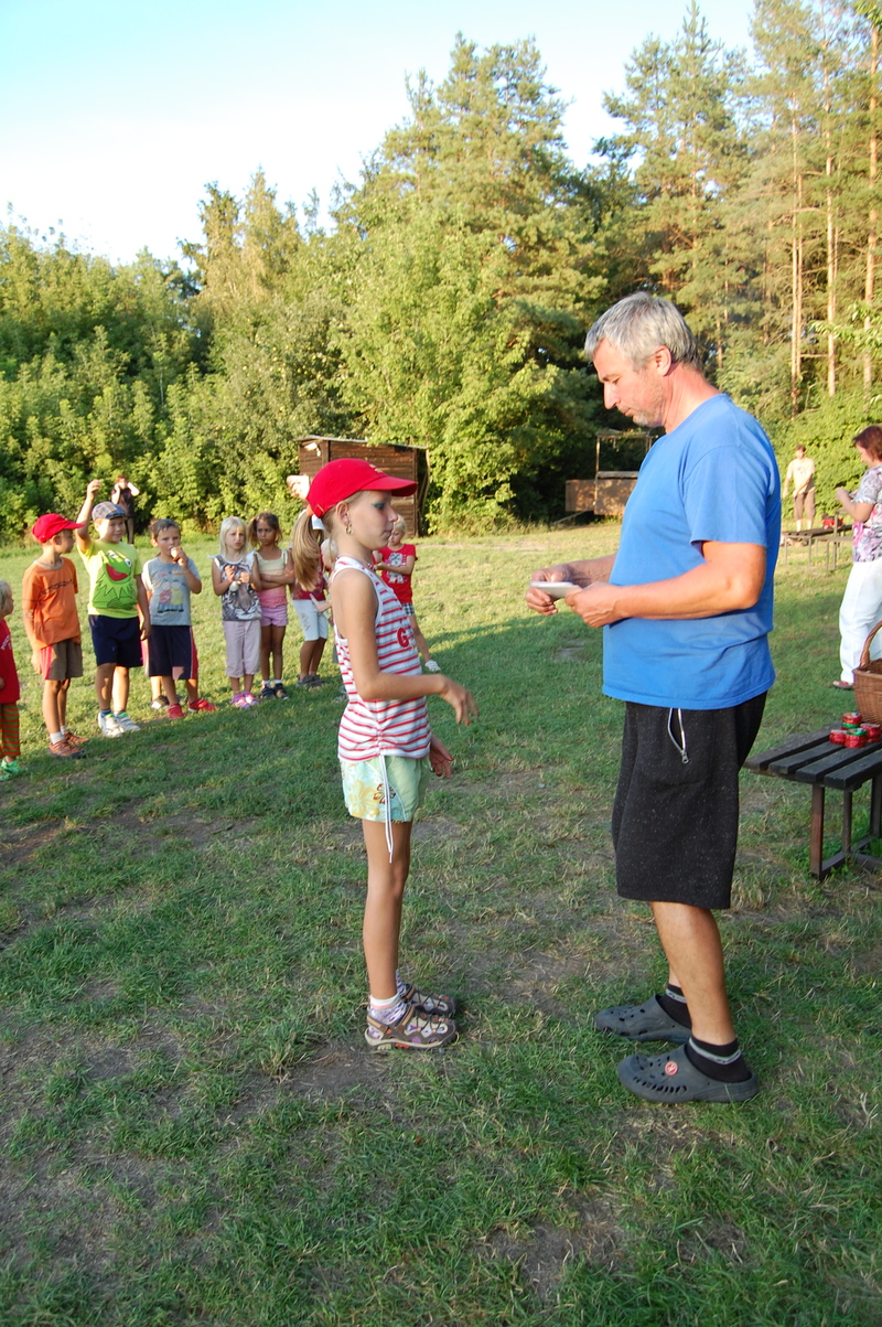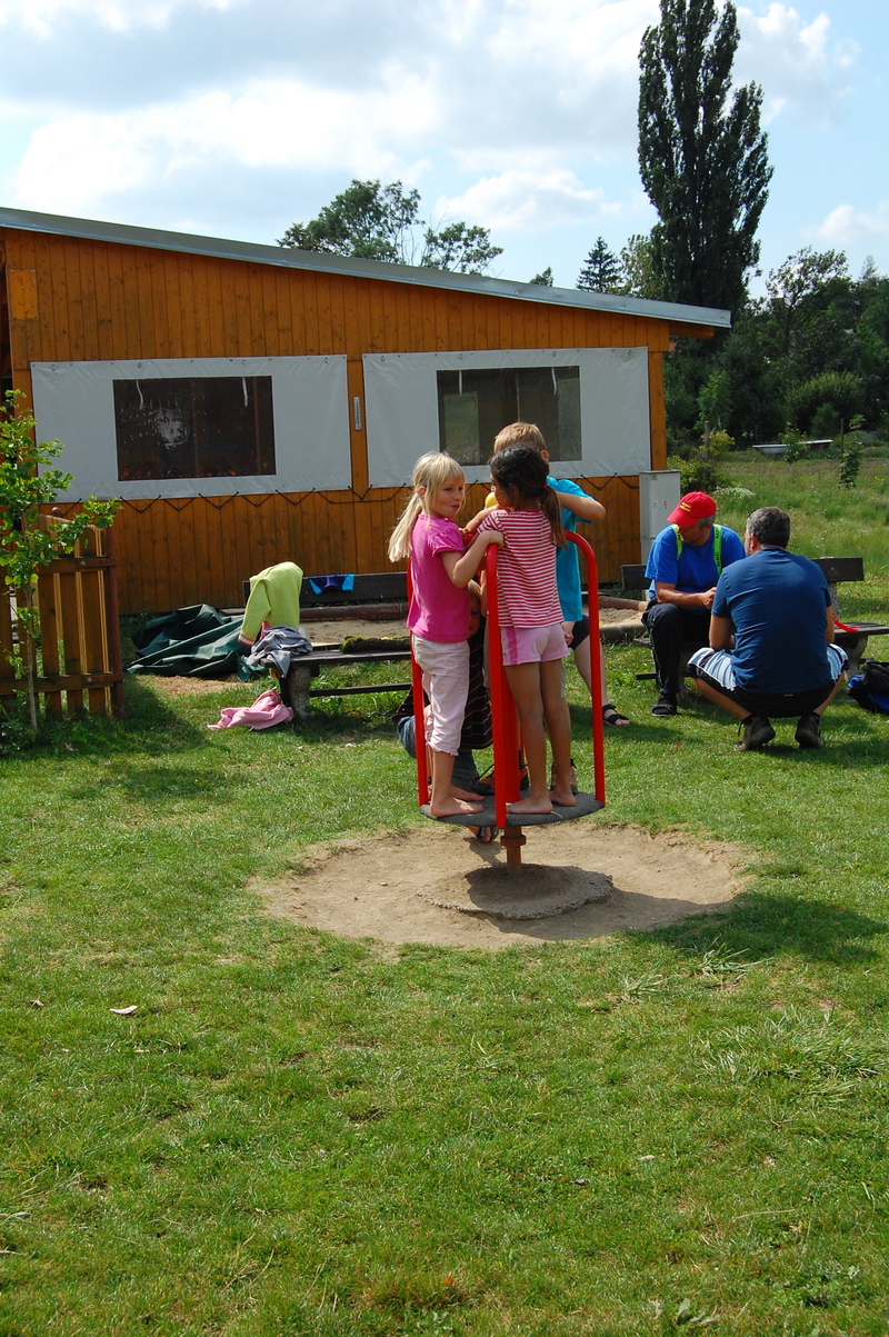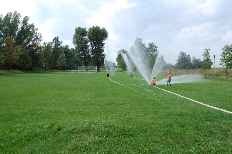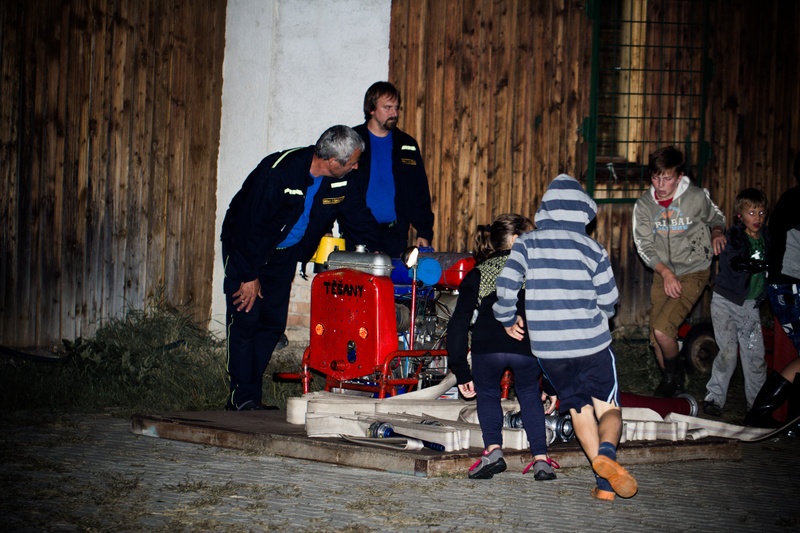 Protože nám to s těmi hadicemi moc nejde a protože družstvo mladších je kompletně v novém složení (někteří ještě dokonce nikdy nezávodili), celý den jsme věnovali požárnímu útoku. Areál v Nesvačilce mají místní hasiči skvěle připravený, takže nás nic nezdržovalo a útoků jsme udělali nepočítaně. Odpoledne nás děti překvapili báječným kotlíkovým gulášem, na kteří dospěláci jen tak trochu dohlíželi. Pod Aniččiným vedením byl ten den ještě úspěšně otevřen koloniál „u Hvězdy“ a s nově objevenou měnou Šp začalo obchodovat celé široké okolí. Opustil nás Čmelda – Aniččin ochočený čmelák o kterého se vzorně děti staraly.