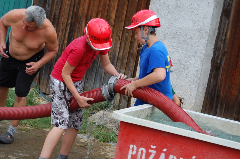 Celé dopoledne požární útoky a práce s hadicemi, savicemi, košem, rozdělovačem a proudnicí. Docela nám to jde a tak doufáme, že na závody „O pohár starosty obce“ v Těšanech přeci jen něco předvedeme. Odpoledne jsme pak celé věnovali zdravovědě, topografii, uzlování, přelézání lana a střelbě ze vzduchovky. Hlavně ve střelbě je znát obrovský pokrok. Mezičas po obědě a večeři je věnován společenským hrám. Navečer jsme měli vzácnou návštěvu – na soustředění nás navštívil starosta Těšan Mirek Zborovský. Popřál mladým hasičům hodně zdaru a dovezl i něco dobrého na zub. Úplně náhodou se ještě navečer spustila požární siréna. I přes lehké zmatení a ospalost mladých hasičů se noční požár podařilo uhasit!