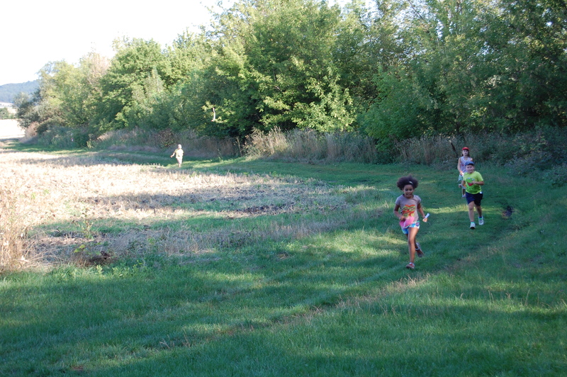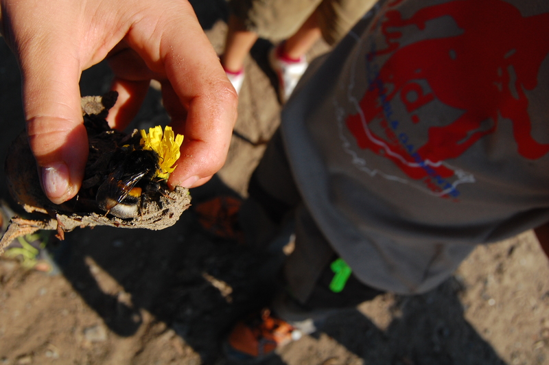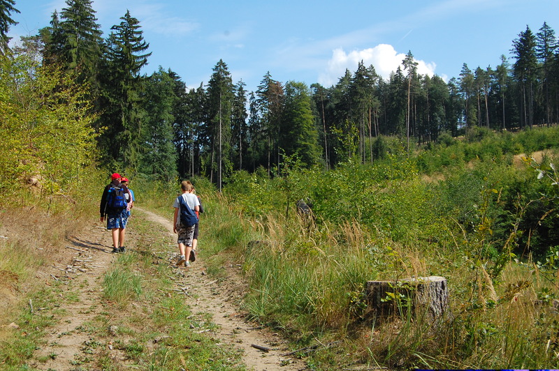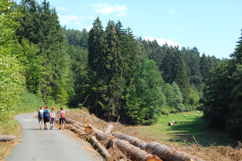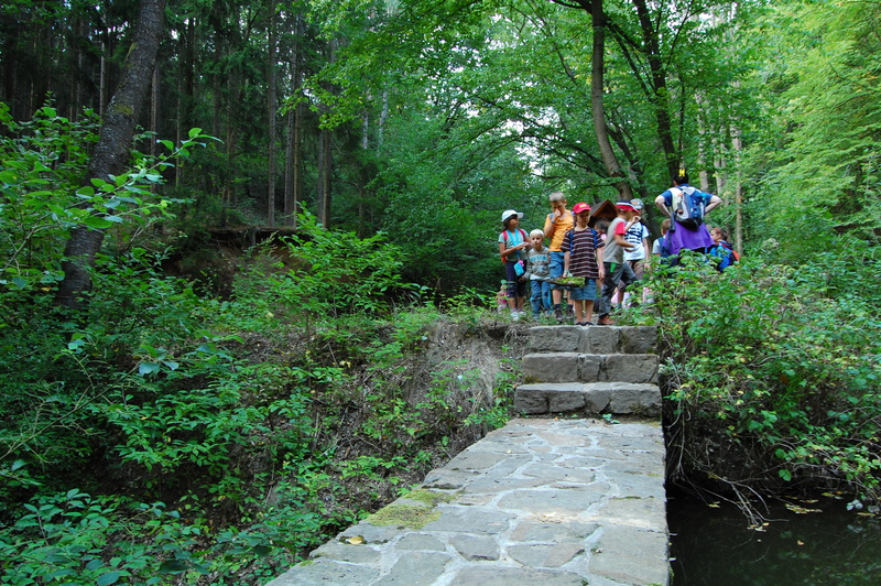 A protože celý pochod nebyl jen o pochodu, ale i o procvičování orientace, zadařilo se nám najít i nádherný poklad v podobě krabice se zmrzlinou. Po obědě a v horkém dni báječný dezert! Anička si ochočila čmeláka. Cesta byla ještě opravdu dlouhá, ale zajímavostí, jako je hrad Vildenberg nebo krásně zpracovaná naučná stezka dokonce i s vodopádem, neubývalo.