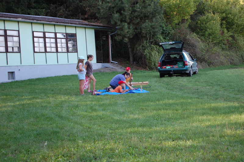 Brzy ráno jsme se sbalili a všechny věci naskládali do auta. V rámci balení jsme si zkusili vlastně první soutěžní úkol soustředění – jak se nouzově odemyká zamčený transportér s klíčky v zavazadlovém prostoru. Soutěž vyhrál až vedoucí Milan, který prokázal neobyčejnou ohebnost a s klackem a provázkem vše zvládl přes střešní okénko. Blahopřejeme!