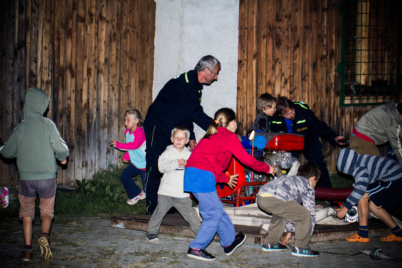 V podvečer dorazili mladí hasiči konečeně do vytouženého cíle – přes Viničné Šumice do Kovalovic. V Kovalovicích tak trochu neplánovaně zjistili jsme jaká je voda v báječném prostoru biotopu, který je takřka z brusu nový. A konečně jsme se chystali do postýlek. Nocležiště jsme tentokráte měli v kovalovické hasičské stanici, kterou nám na noc místní zapůjčili. Moc děkujeme! Areál biotopo se nám tak líbil, že jsme v něm nakonec trávili ještě i celé nedělní dopoledne. Počasí bylo báječné a voda krásně teplá, takže jsme se do koupele vrhli snad všichni. Po návratu do Nesvačilky se k nám přidal poslední zbytek osazenstva, vybalili jsme a ještě trochu odpočívali po náročném pochodu. Večer nás čekal ještě neobvyklý úkol. Se zavázanýma očima postupně všechny mladé hasiče vedoucí odvezli na tajné místo. Cestou probíhala zuřivá debata ohledně práce s buzolou a nočním návratem do Nesvačilky a zda je obutí dostatečné do terénu. Jaké bylo překvapení, když se šátek z očí sundal a děti stály v Těšanech na hasičce a před sebou uviděli sprchu, mýdlo a ručník. Celá noc proběhla v klidném a hlubokém spánku.