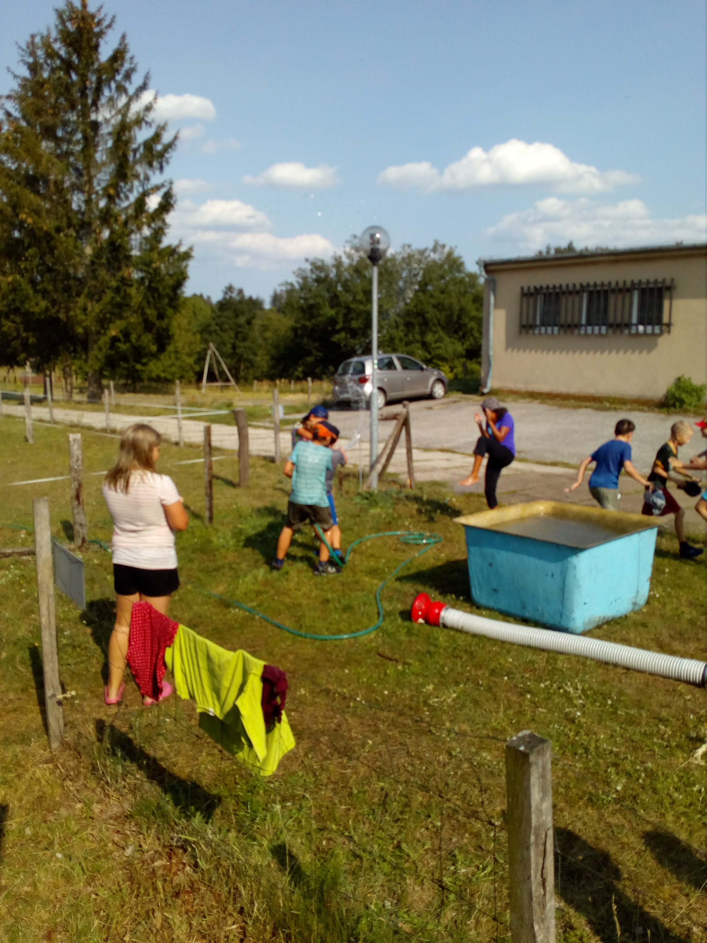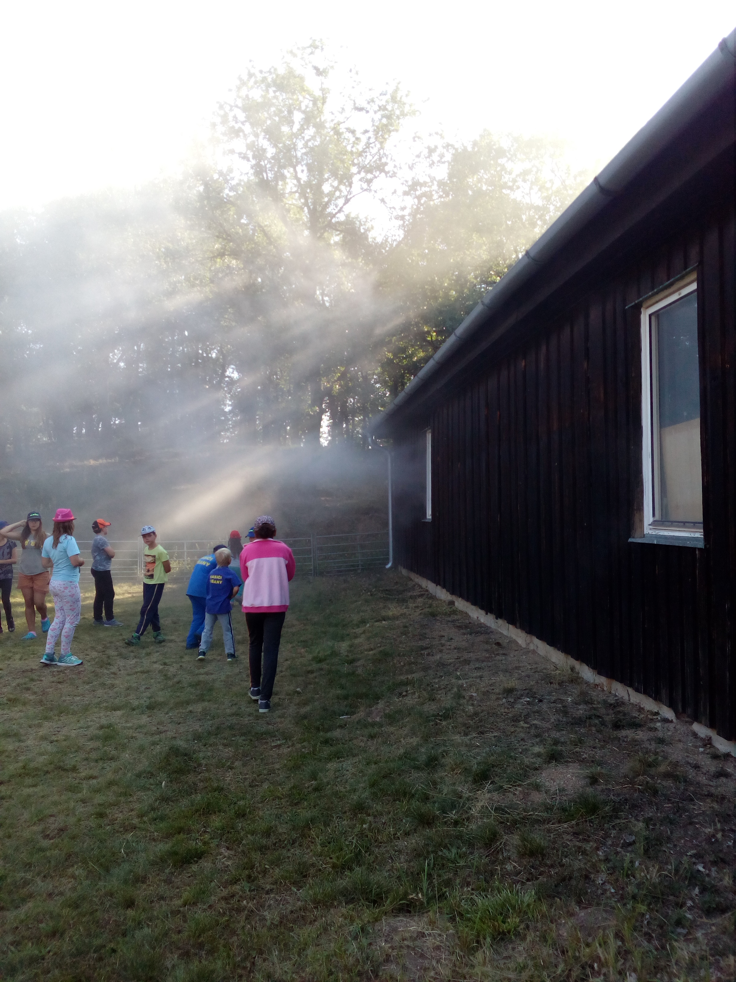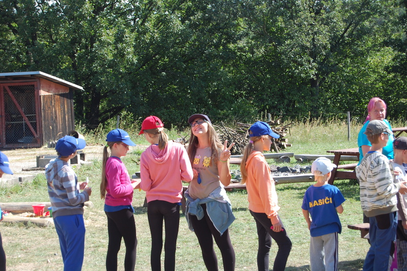 Po dopoledních hasičinách a složité organizaci transportu vydali jsme se na putování. Nebylo nijak závratně dlouhé, ale o to zábavnější pro plnění různých úkolů, které jsme nacházeli podél celé cesty. Určitě jsme se dozvěděli hodně i o tom, jak je potřeba chránit přírodu. Pochoďák se protáhl do pozdních nočních hodin a tak jsme byli všichni rádi za teplou večeři, sprchu a pohádku.