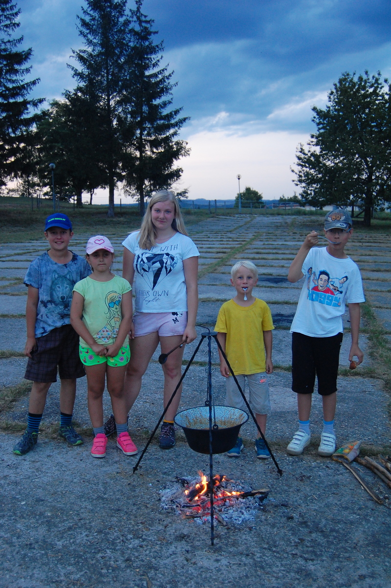 Celý den jsme se věnovali hasičinám, tvrdě jsme trénovali uzly, topografii, spojovali hadice a stříleli ze vzduchovek. Této disciplíně jsme letos věnovali náležitou pozornost a stojí za zmínku, že kdo střílet uměl, střílí ještě lépe a kdo neuměl se to naučil. Bez výjimky. Jak by také ne, když kvantita jistě mohla se rovnat dobám, kdy na Zlobici úřadovali vojáci. Za soustředění jsme vystříleli přes 1500 diabolek. Oblíbená soutěž ve škrábání brambor nemohla chybět a tak se k večeři leskla ústa od skvělých bramboráků. Jako každý rok nám totiž vařilo a peklo fantastické duo Jana a Vlaďka, které plnili bříška samými dobrotami.