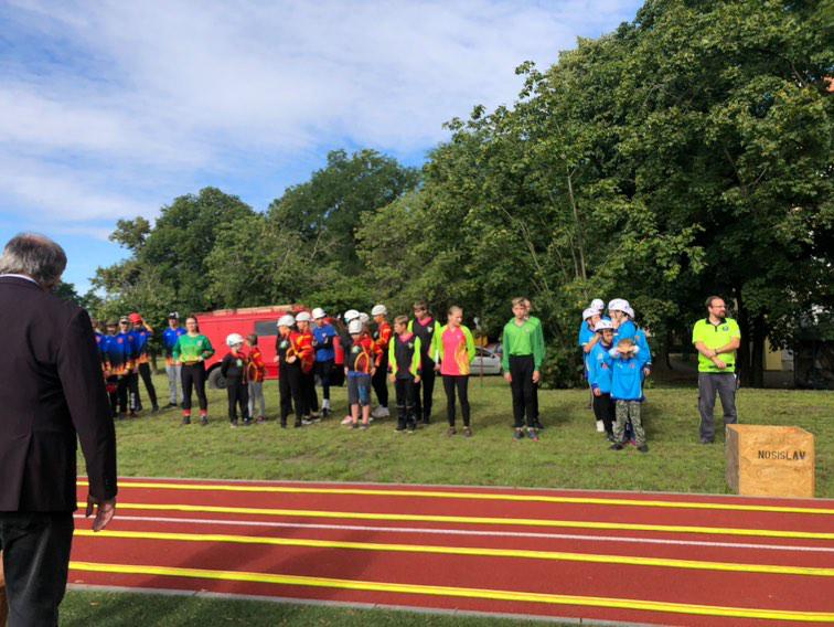 V předchozím roce nově rekonstruované sportoviště upravené speciálně pro hasiče skýtá nové možnosti a letos jsme konečně do soutěže mohli zařadit i skvělou hasičskou věž. Závodníci ji museli zdolat po hákovém žebříku a zakončit svůj soutěžní pokus sjezdem po skluzu.
