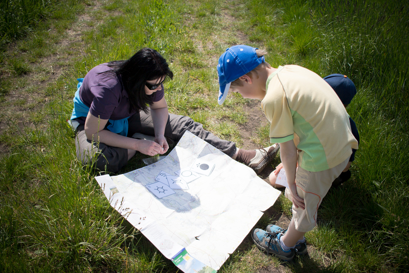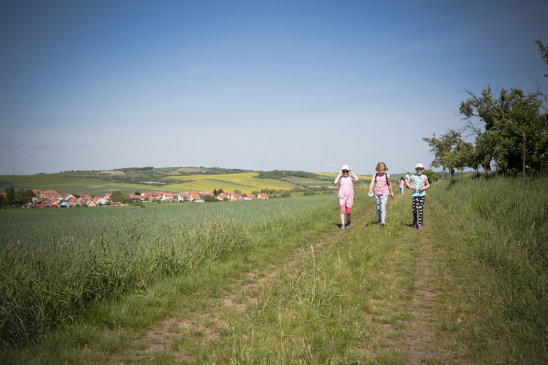 A protože celý pochod nebyl jen o pochodu, ale i o procvičování orientace, zadařilo se nám najít i nádherný poklad v podobě krabice se zmrzlinou. Po obědě a v horkém dni báječný dezert! Anička si ochočila čmeláka. Cesta byla ještě opravdu dlouhá, ale zajímavostí, jako je hrad Vildenberg nebo krásně zpracovaná naučná stezka dokonce i s vodopádem, neubývalo.
