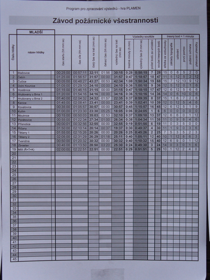 Protože se nás sešlo poměrně hodně, vydali jsme se na soutěž dokonce ve dvou družstvech mladších žáků a ještě jsme pomohli vytvořit hlídku MIX.