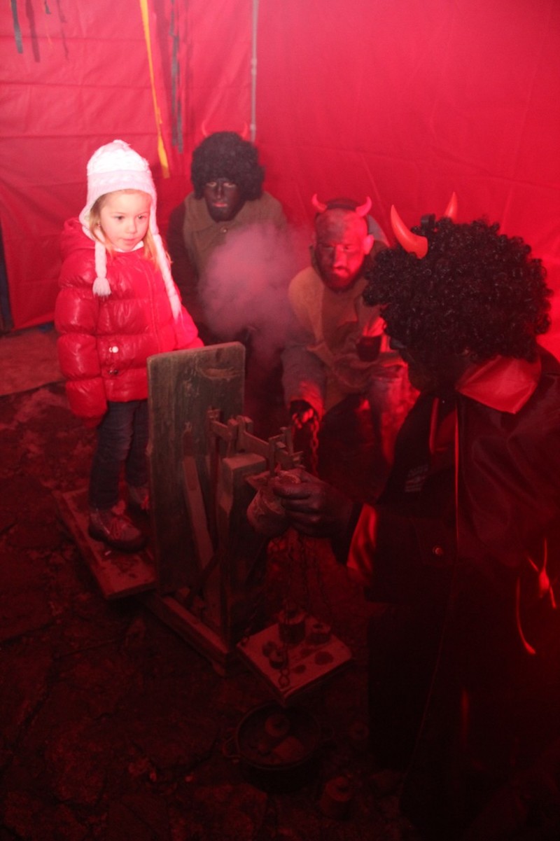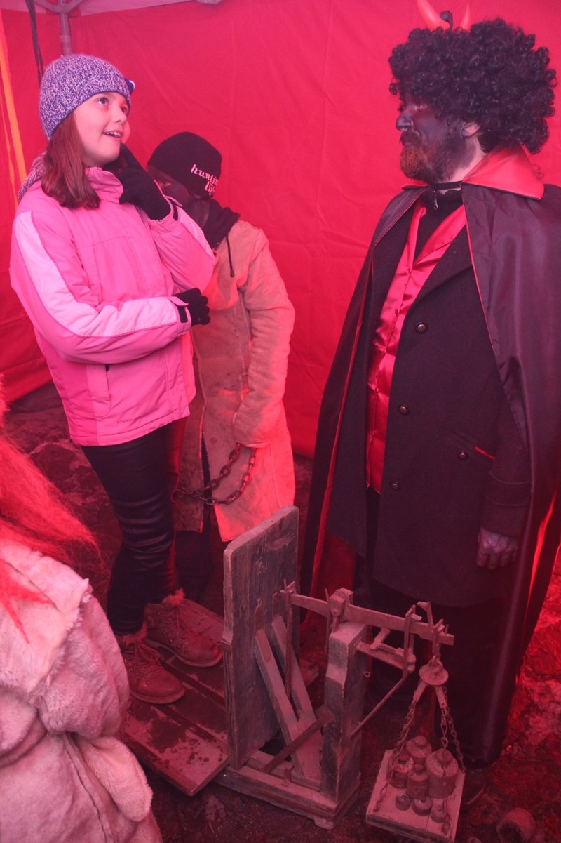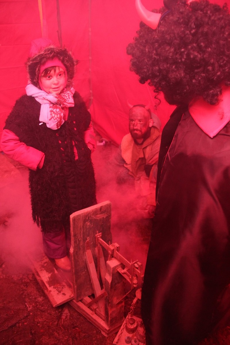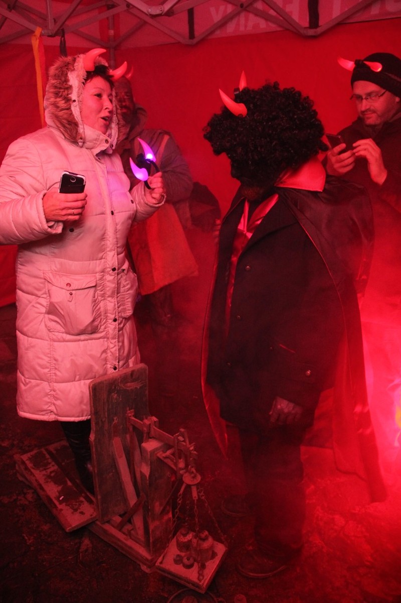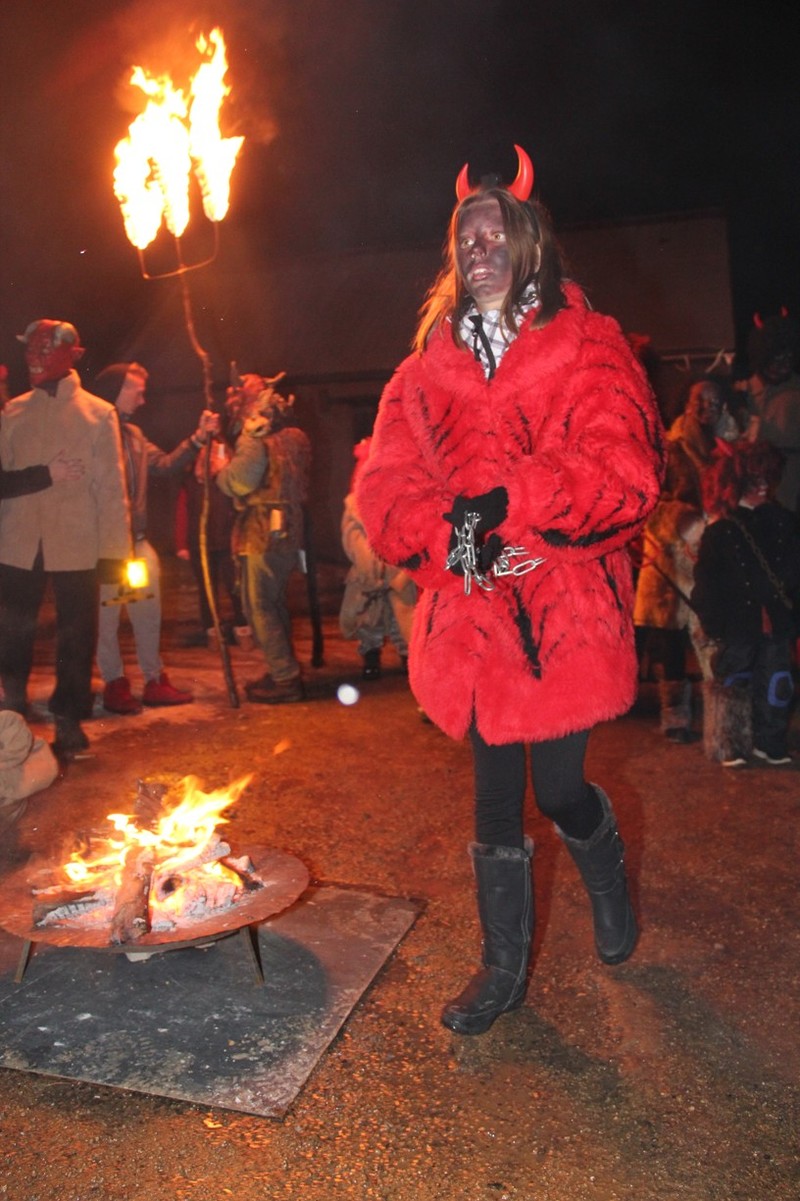 Zveřejněno 08.01.2018V něděli dne 3.12. u Těšanské kovárny se v podvečer pořádala již tradiční přehlídka čertů, doprovázena ohnivou show, při které se nejedno dítě schovávalo mamince pod sukni. Po Luciferovu proslovu bylo každé dítě pečlivě převáženo na pekelné váze a s přispěním svých rodičů vyzpovídáno ze svých hříchů, které si donesli do pekla napsány na pergamenu. Naštěstí většina těšanských dětí vyvázla s minimálními následky a to ve formě básničky nebo slibu „já už budu hodný!“... Ty hodně zlobivé, nebo přesněji řečeno odvážné, čekala návštěva pekelného vězení, které hlídali naši malí pekelníčci. Všechny děti nakonec dostali od Mikuláše a jeho andělů sladkou odměnu.