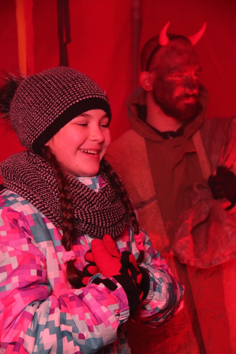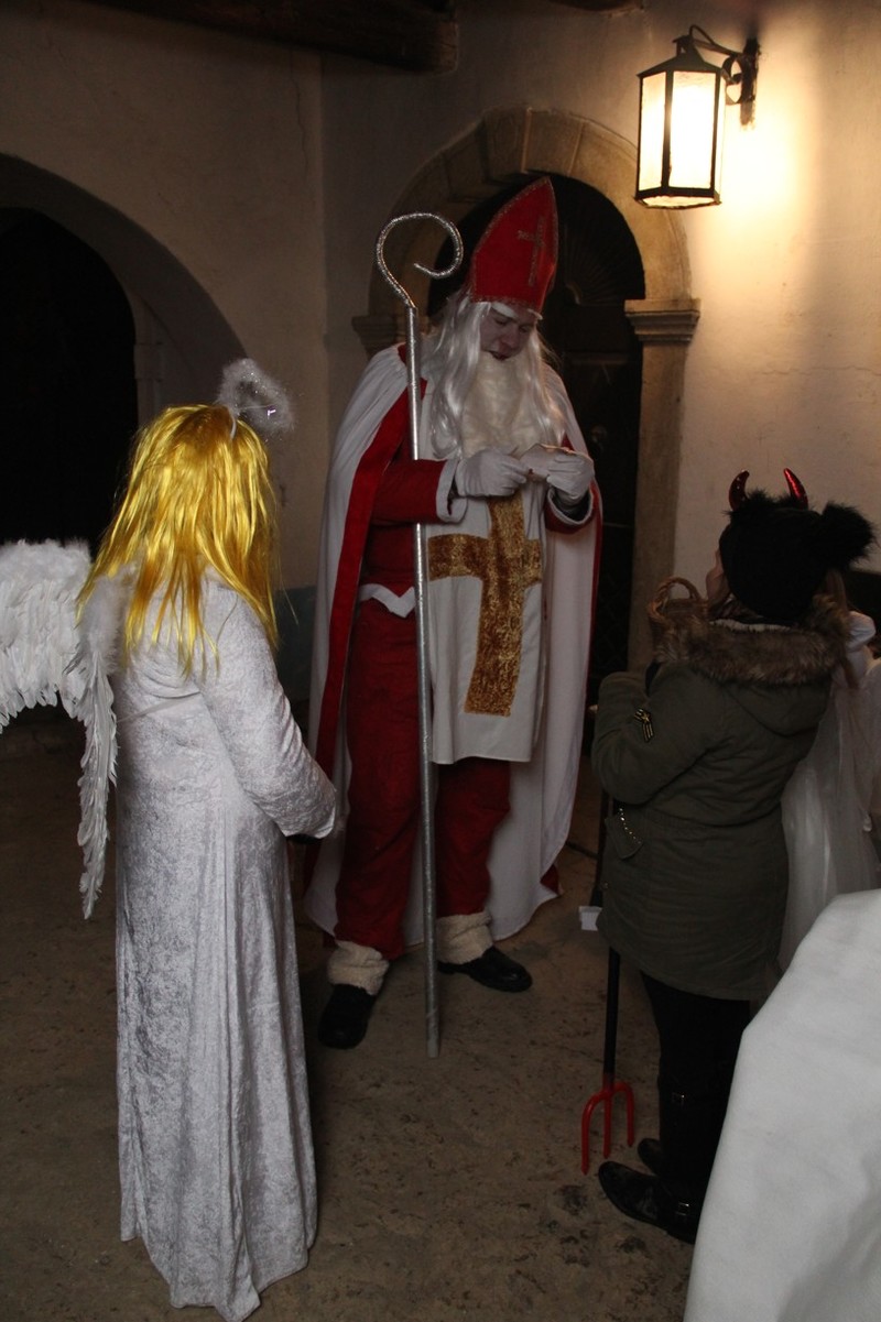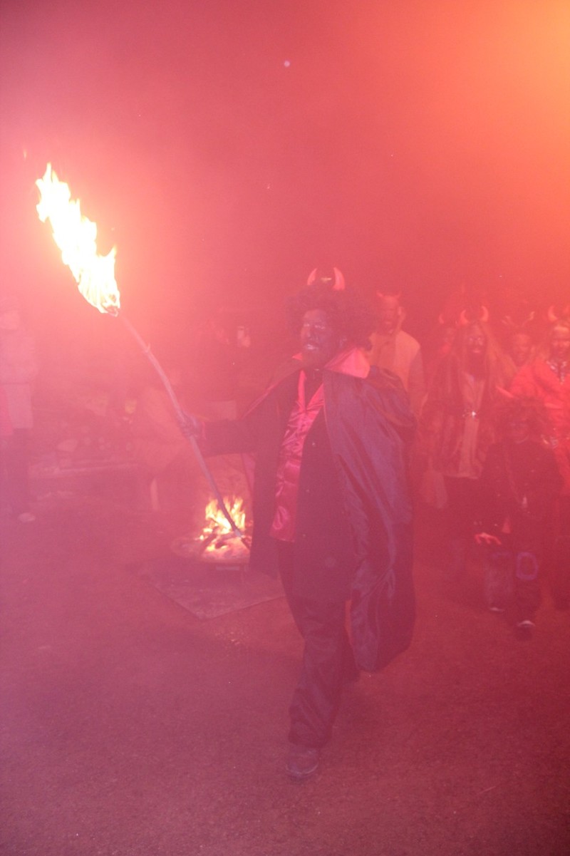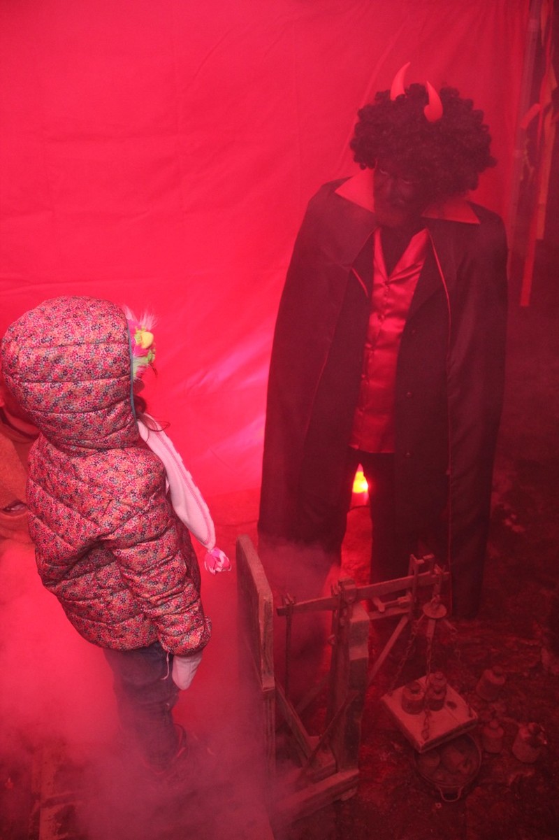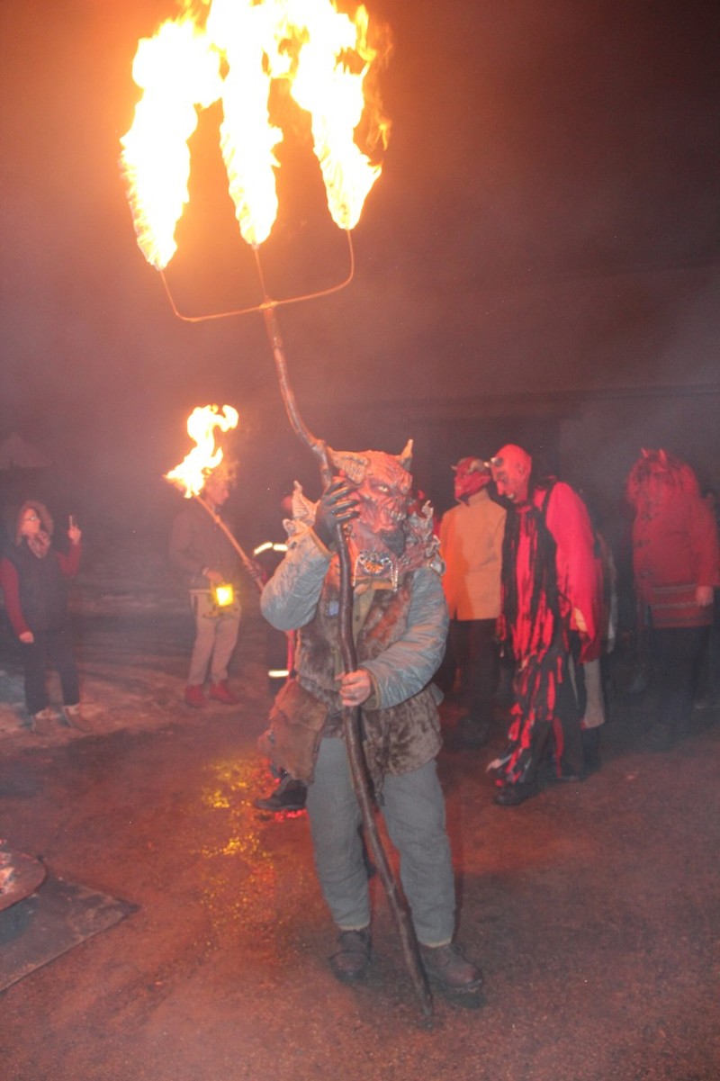 Zveřejněno 08.01.2018V něděli dne 3.12. u Těšanské kovárny se v podvečer pořádala již tradiční přehlídka čertů, doprovázena ohnivou show, při které se nejedno dítě schovávalo mamince pod sukni. Po Luciferovu proslovu bylo každé dítě pečlivě převáženo na pekelné váze a s přispěním svých rodičů vyzpovídáno ze svých hříchů, které si donesli do pekla napsány na pergamenu. Naštěstí většina těšanských dětí vyvázla s minimálními následky a to ve formě básničky nebo slibu „já už budu hodný!“... Ty hodně zlobivé, nebo přesněji řečeno odvážné, čekala návštěva pekelného vězení, které hlídali naši malí pekelníčci. Všechny děti nakonec dostali od Mikuláše a jeho andělů sladkou odměnu.