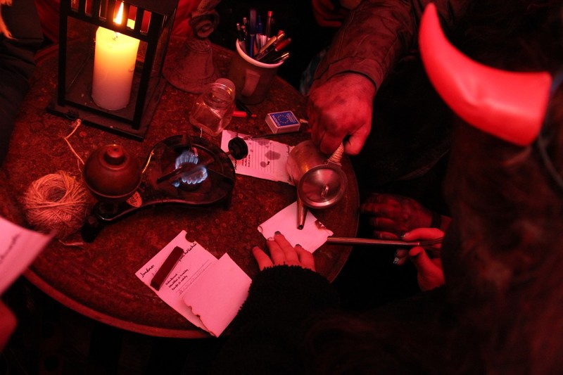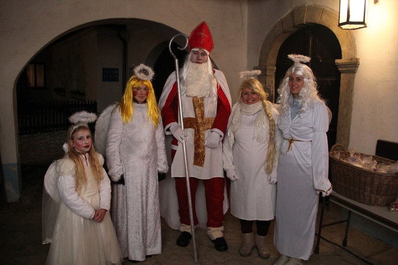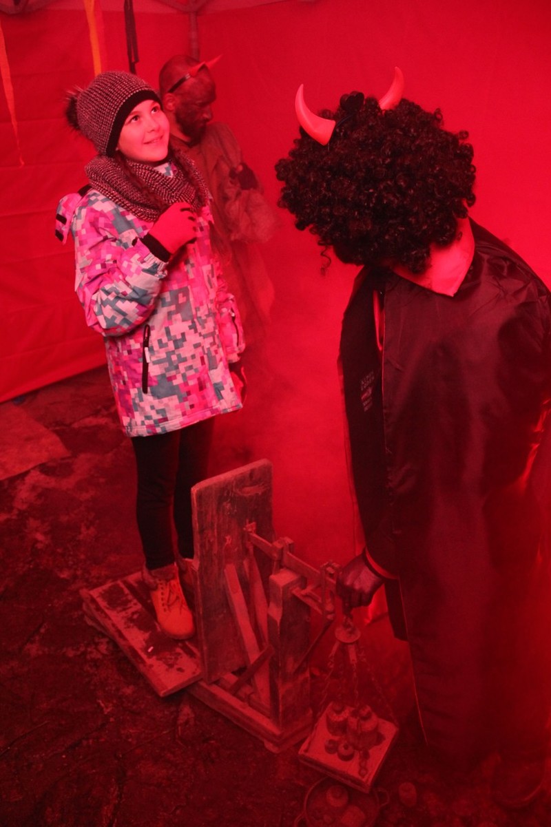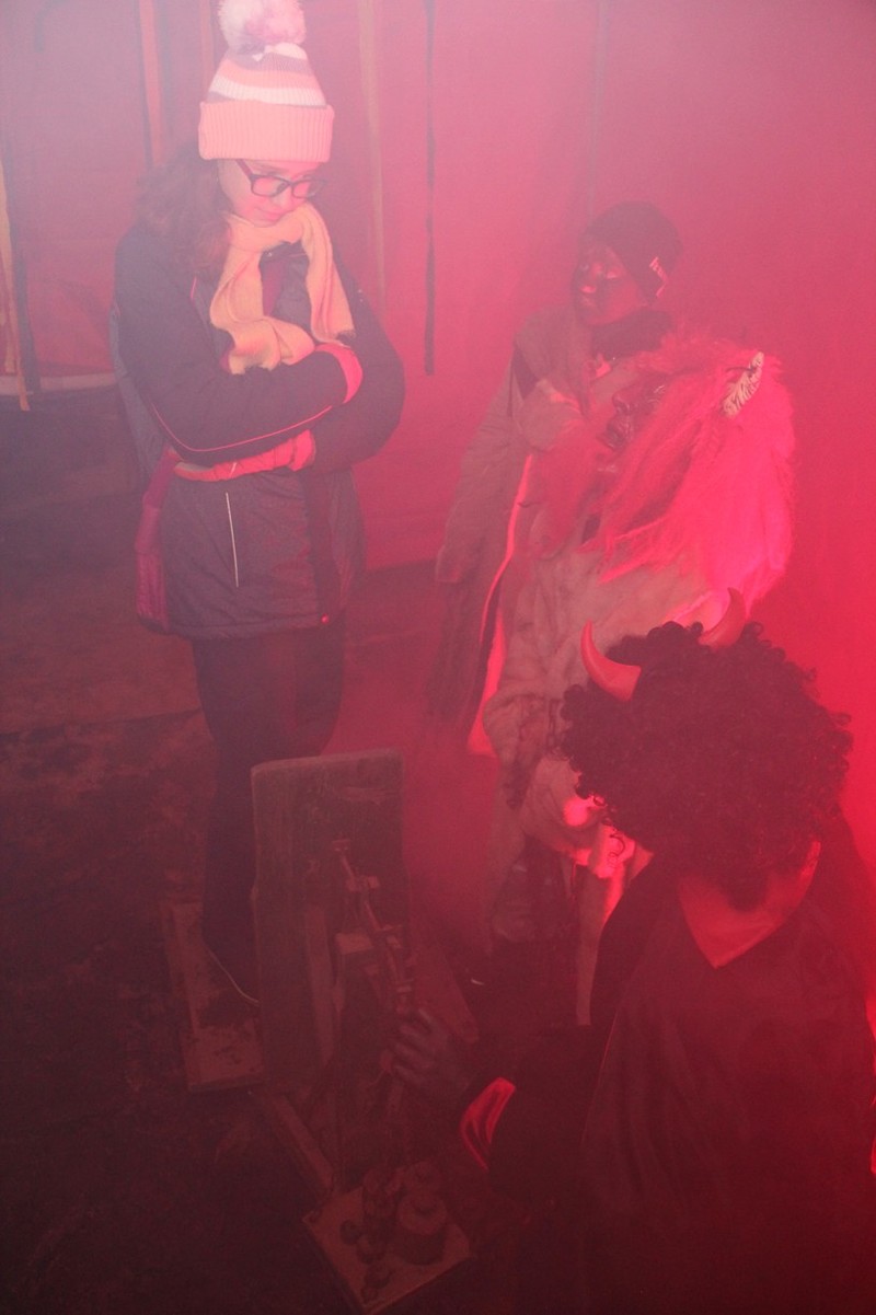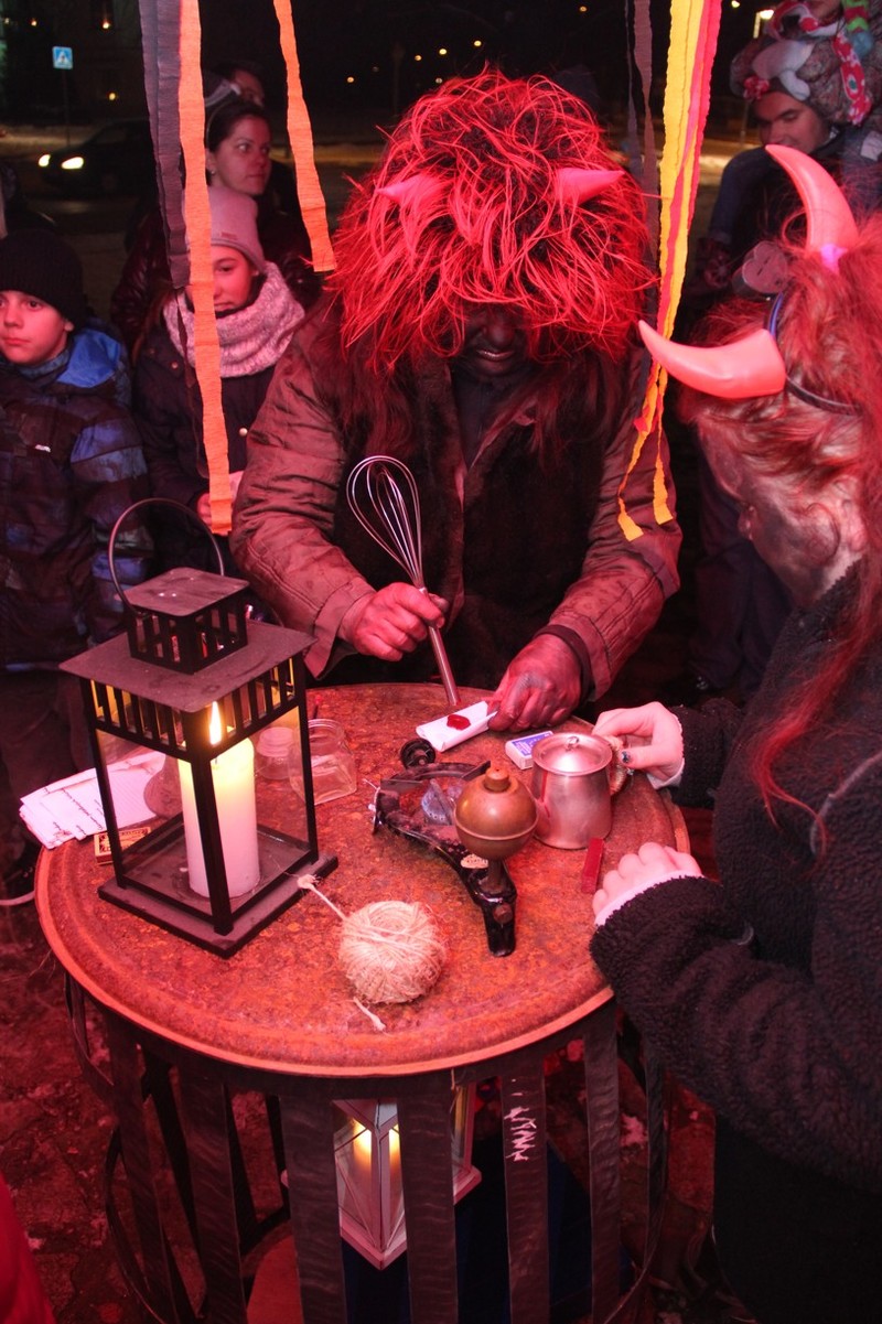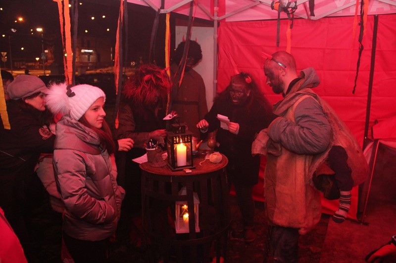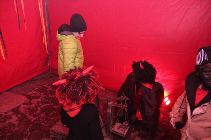 Zveřejněno 08.01.2018V něděli dne 3.12. u Těšanské kovárny se v podvečer pořádala již tradiční přehlídka čertů, doprovázena ohnivou show, při které se nejedno dítě schovávalo mamince pod sukni. Po Luciferovu proslovu bylo každé dítě pečlivě převáženo na pekelné váze a s přispěním svých rodičů vyzpovídáno ze svých hříchů, které si donesli do pekla napsány na pergamenu. Naštěstí většina těšanských dětí vyvázla s minimálními následky a to ve formě básničky nebo slibu „já už budu hodný!“... Ty hodně zlobivé, nebo přesněji řečeno odvážné, čekala návštěva pekelného vězení, které hlídali naši malí pekelníčci. Všechny děti nakonec dostali od Mikuláše a jeho andělů sladkou odměnu.