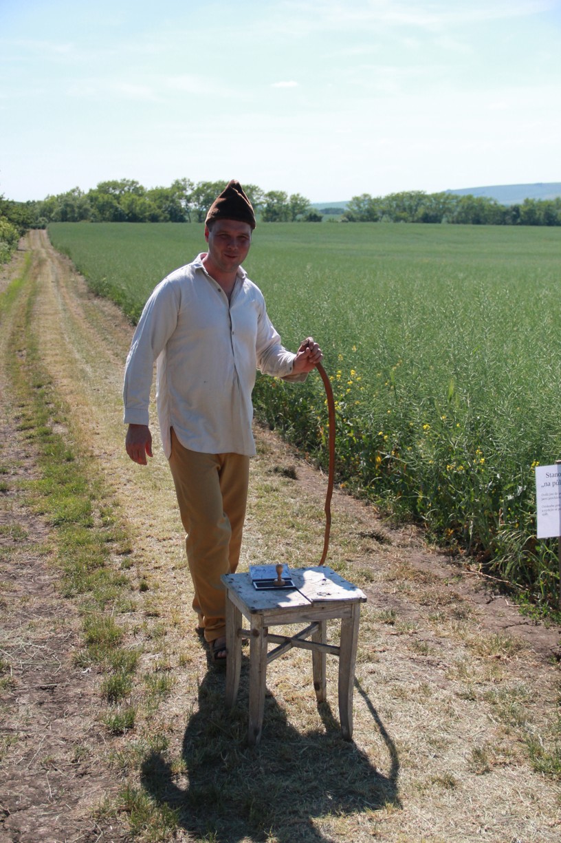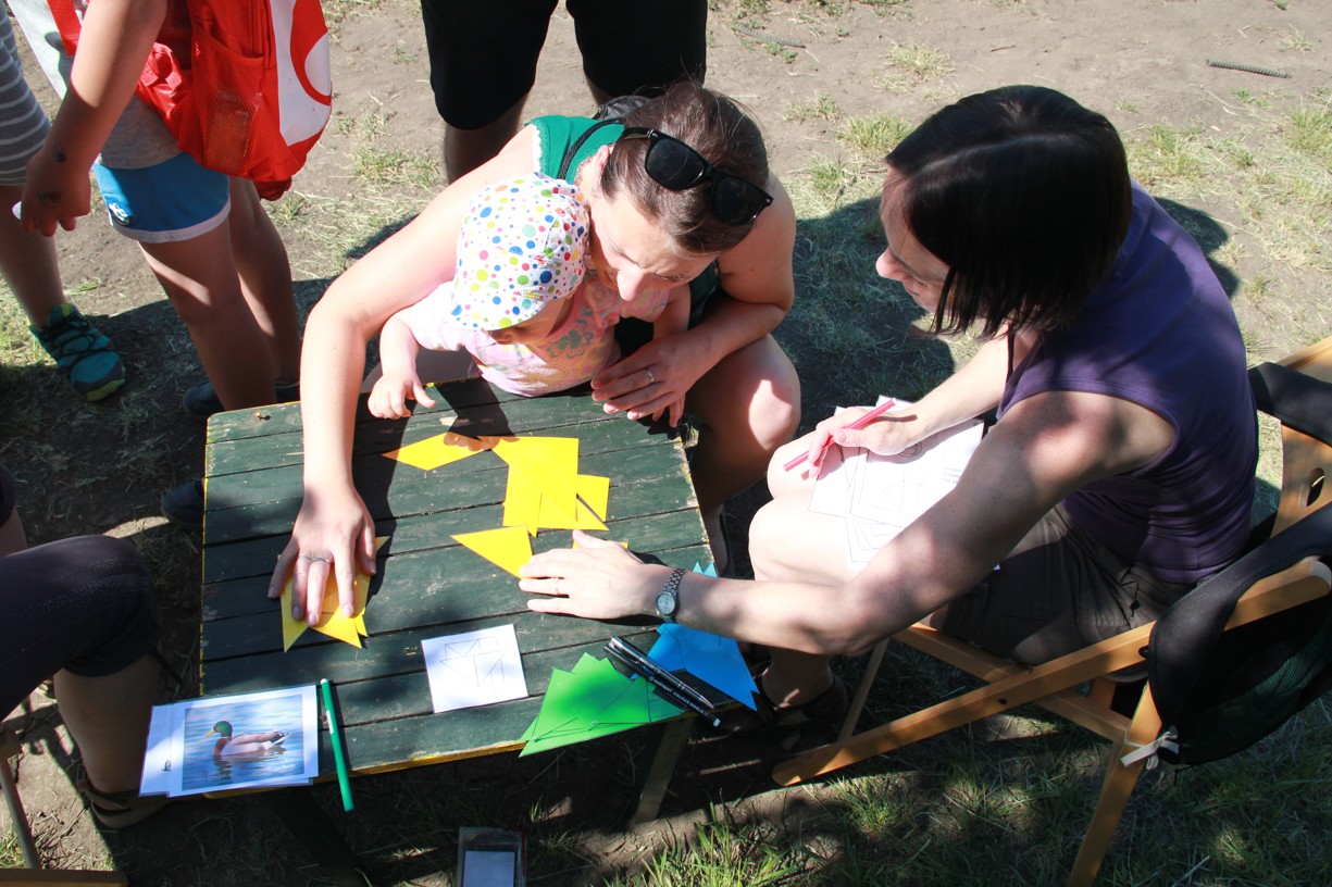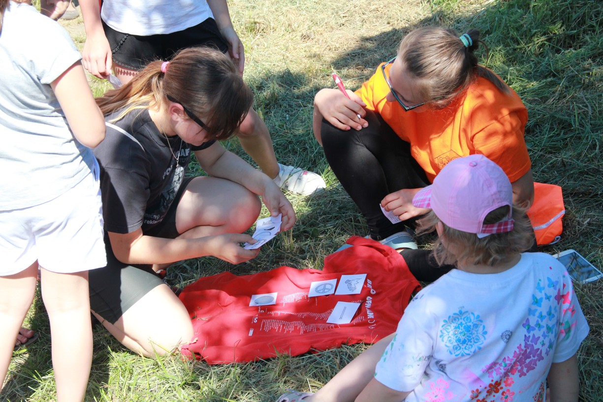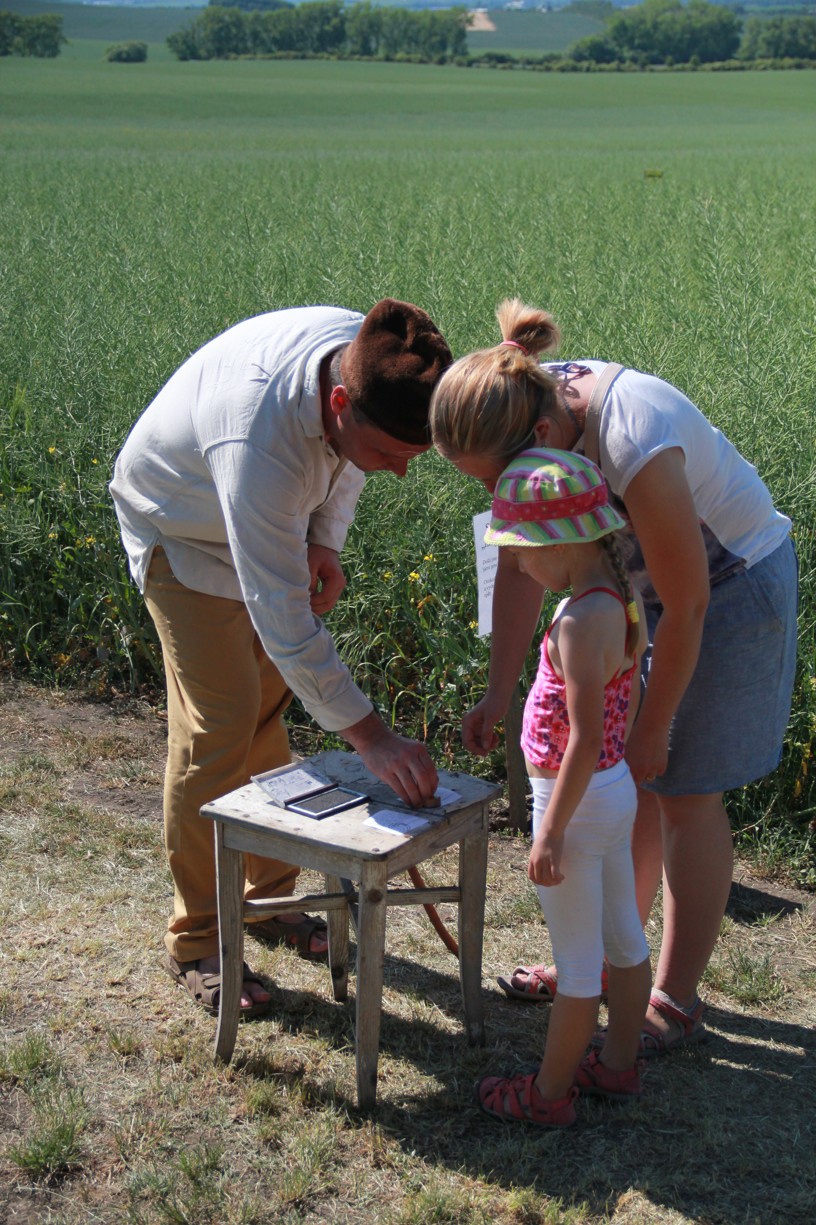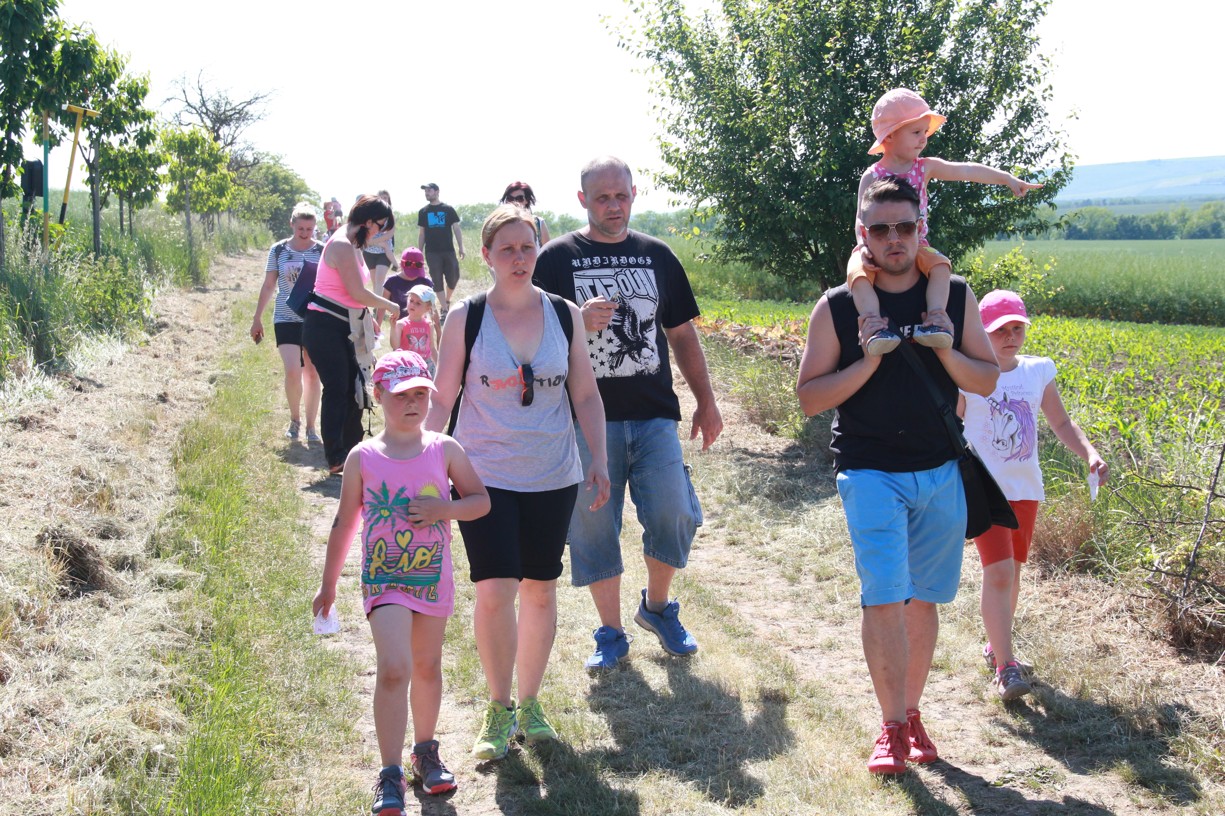 Na dalším stanovišti mladí i starší účastníci docela slušně zatloukají hřebíky na jednu ránu. Jinde zase poznávají stopy zvěře, nejmenší se učí pojmenovat naše divoká zvířátka. Trénujeme paměť, uzlujeme o sto šest. Nakonec i ten skok v pytli není tak špatný. Užijeme si maskované zranění, které vypadá tak opravdově, že některé maminky (i tatínkové) raději koukají přes pole na Těšany. Je tu přeci jen krásně. Jsem rád, že se tolik nadšených duší v sobotu po obědě vydalo na procházku užít si právě tenhle výhled.