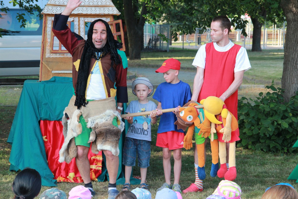 Odpolední představení divadelního spolku Koráb nakonec původní inscenaci Kašpárek a drak muselo operativně změnit na strašidelné představení Perníková chaloupka. Raději se ani neptejte proč! Perníková chaloupka je trošku o tom, jak děti umí být hodné a zároveň nezbedné. Zažili jsme strach z tajemného lesa a vyzkoušeli si, jak se sedí na lopatě před rozpálenou pecí. Ale nebojte se, všechno dobře dopadlo, jak to ve správné pohádce má být!