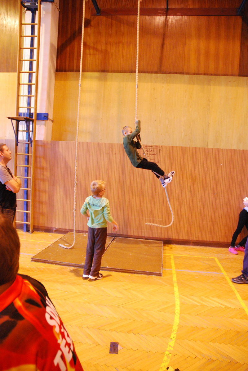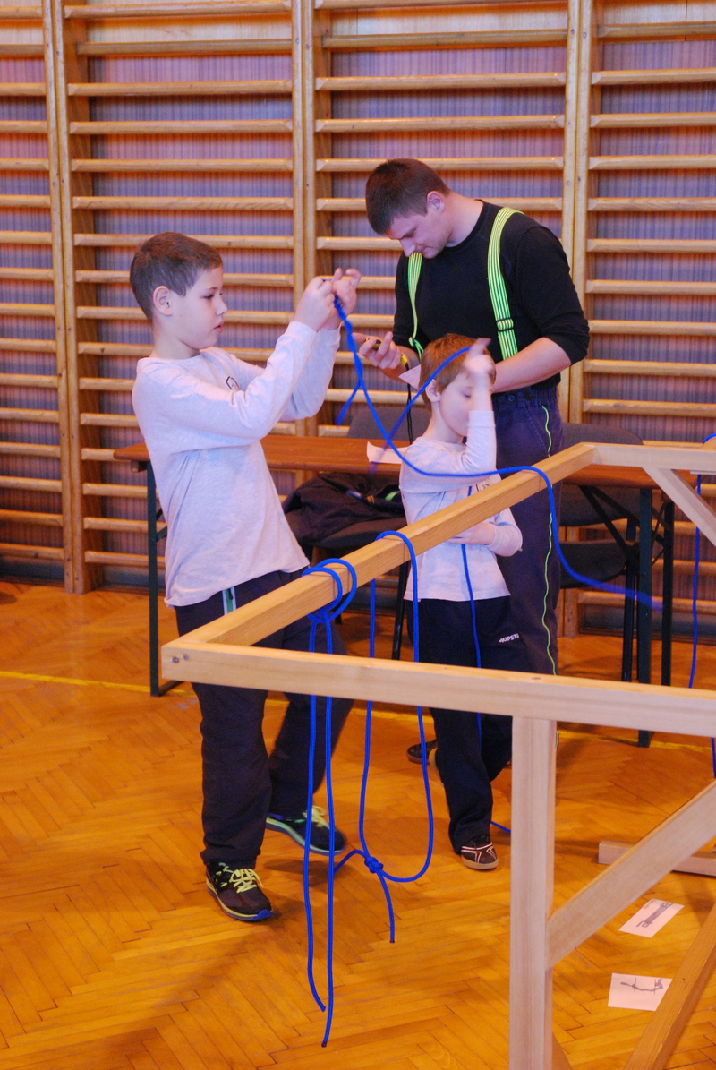 Starší žáci, protože byli rychle hotoví, soutěžili na dvě kola. Ačkoliv vše proběhlo ve velmi pozitivní a přátelské atmosféře, ukázalo se, že obecná pravidla nejsou úplně jasná a tak pro příští rok stanovíme pravidla přesná. I tak ale budeme klást hlavně důraz na funkčnost a vzhled uzlu a ne na to, zda je proudnice po uvázání orientovaná severovýchodním směrem. Pro četné dotazy a ohlasy ze soutěže mikulášské budeme jistě se snažit o vybudování samostatných úkolů pro soutěžící v kategorii dorostu. Důležité je přeci si zauzlovat, ne? :-)