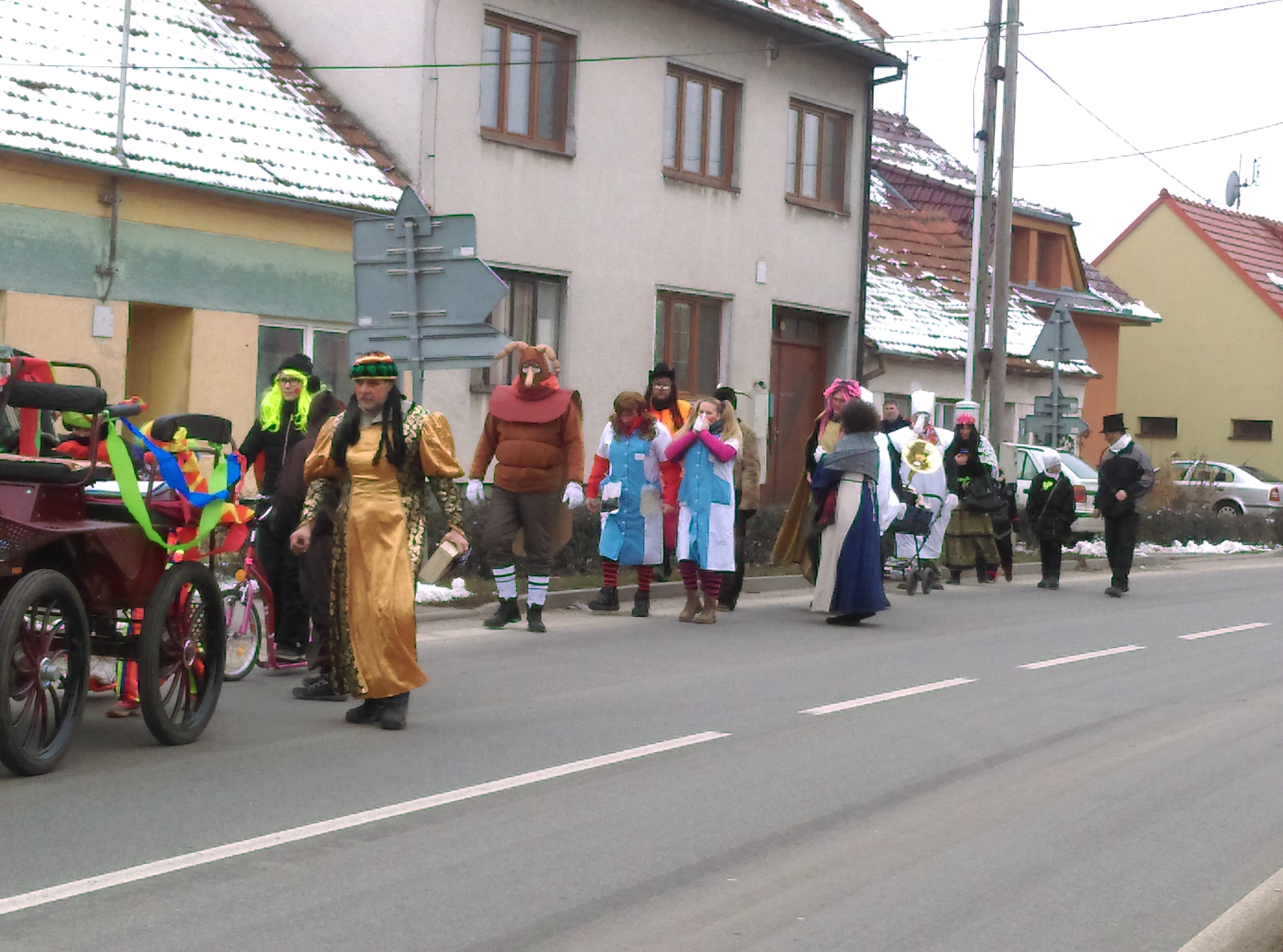 Zveřejněno 26.02.2017V sobotu 25.2.2017 prošel naší obcí tradiční ostatkový průvod. Letos s koněm i muzikou navštívili jsme všechny domy a pozdravili v netradičním odění naše sousedy. Letos jsme se v předlouhé cestě dočkali i pomoci nečekané - dorazily sestřičky z SDH Nosislav, které nemocným pánům opatrným polibkem léčily neduhy!