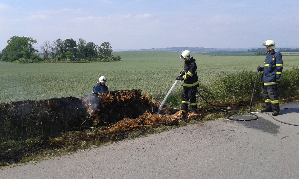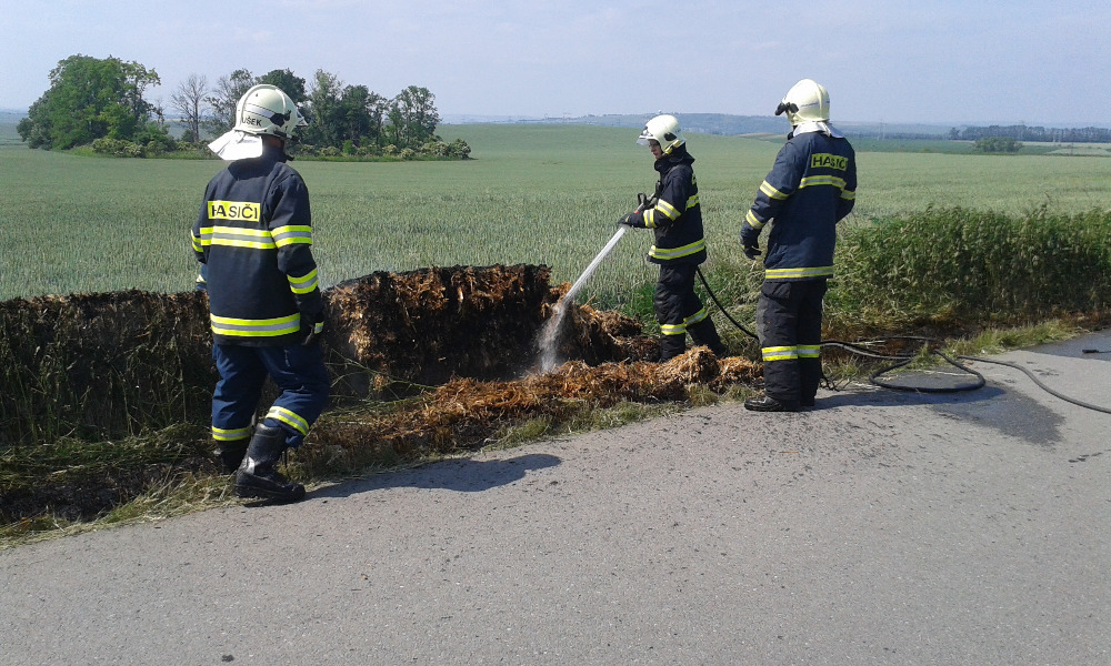- 10.6. Požár suché posečené trávy u hřbitova. Při dočerpávání CAS-25 po zásahu č.1 vyhlášen požár balíku slámy směr Otnice.