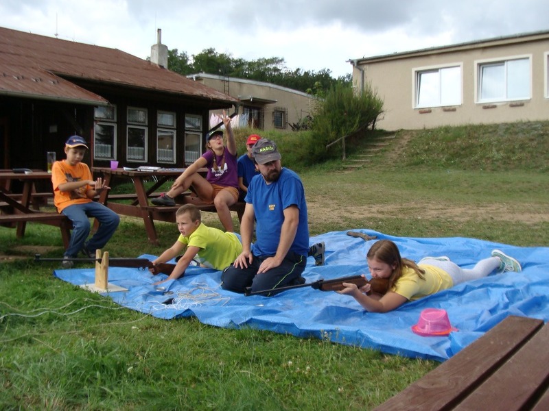 Celý den jsme se věnovali hasičinám, tvrdě jsme trénovali uzly, topografii, spojovali hadice a stříleli ze vzduchovek. Této disciplíně jsme letos věnovali náležitou pozornost a stojí za zmínku, že kdo střílet uměl, střílí ještě lépe a kdo neuměl se to naučil. Bez výjimky. Jak by také ne, když kvantita jistě mohla se rovnat dobám, kdy na Zlobici úřadovali vojáci. Za soustředění jsme vystříleli přes 1500 diabolek. Oblíbená soutěž ve škrábání brambor nemohla chybět a tak se k večeři leskla ústa od skvělých bramboráků. Jako každý rok nám totiž vařilo a peklo fantastické duo Jana a Vlaďka, které plnili bříška samými dobrotami.