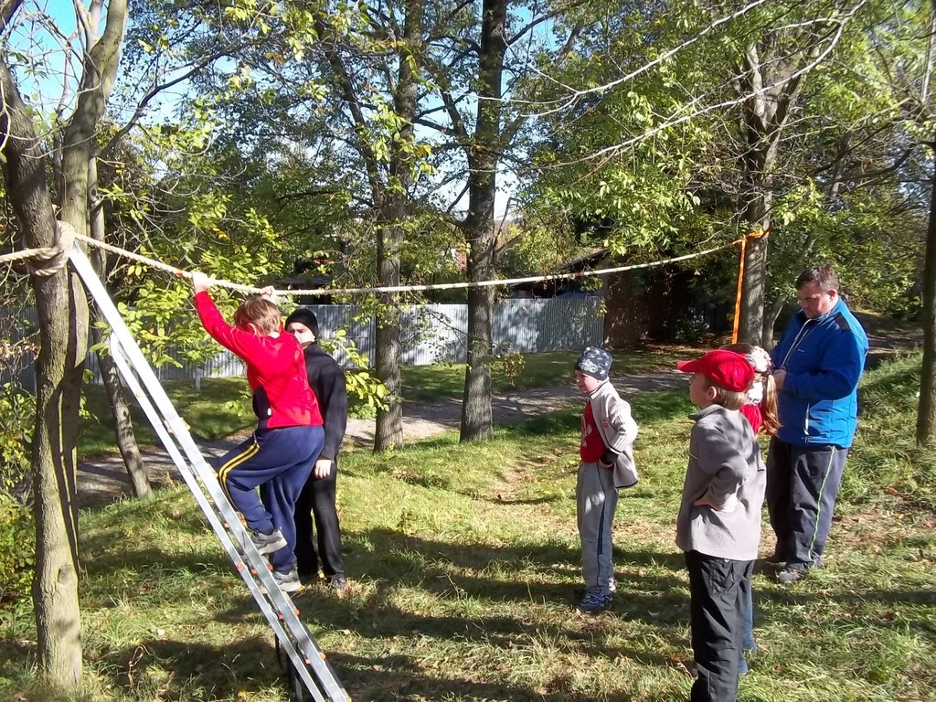 Minulý rok jsme si přivezli medaili, takže jsme doufali, že i tentokráte by to mohlo vyjít. Po deštivé noci na nás v sobotu ráno vykouklo sluníčko a tak se 6 odvážných vydalo na cestu. Soutěžilo se ve dvojicích a kromě dlouhé tratě museli závodníci zdolat i několik stanovišť. Na prvním stanovišti si vyzkoušeli střelbu, na druhém uzlování, následovala topografie, požární ochrana a překvapení na závěr - zdolání lana.