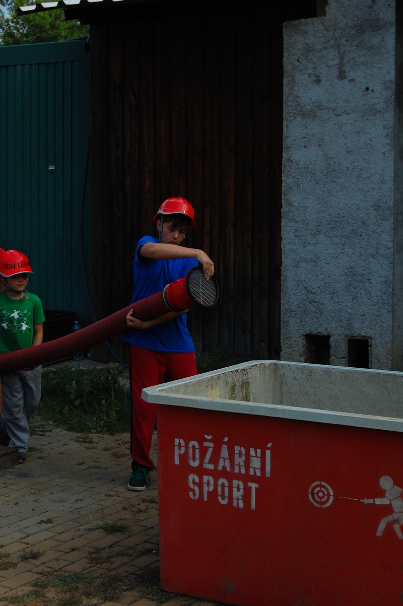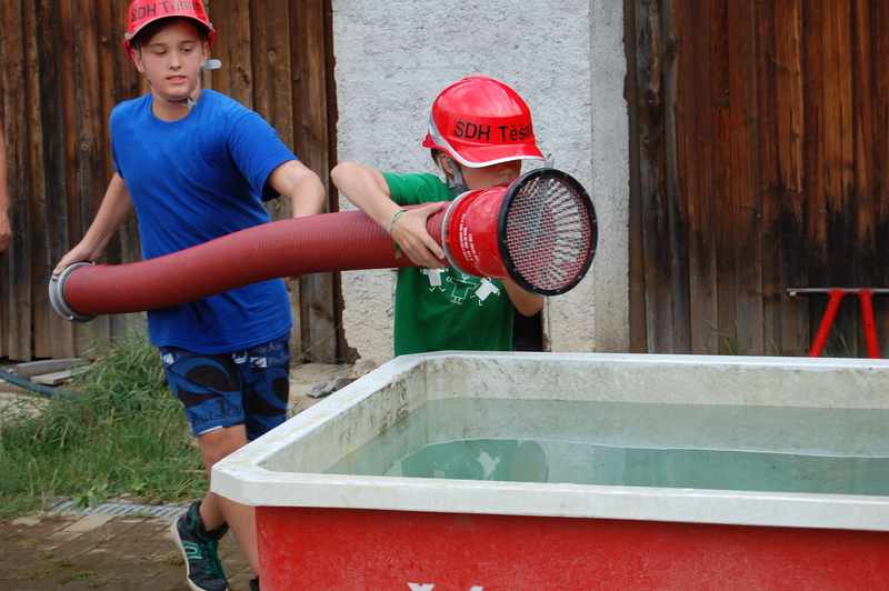 Protože nám to s těmi hadicemi moc nejde a protože družstvo mladších je kompletně v novém složení (někteří ještě dokonce nikdy nezávodili), celý den jsme věnovali požárnímu útoku. Areál v Nesvačilce mají místní hasiči skvěle připravený, takže nás nic nezdržovalo a útoků jsme udělali nepočítaně. Odpoledne nás děti překvapili báječným kotlíkovým gulášem, na kteří dospěláci jen tak trochu dohlíželi. Pod Aniččiným vedením byl ten den ještě úspěšně otevřen koloniál „u Hvězdy“ a s nově objevenou měnou Šp začalo obchodovat celé široké okolí. Opustil nás Čmelda – Aniččin ochočený čmelák o kterého se vzorně děti staraly.