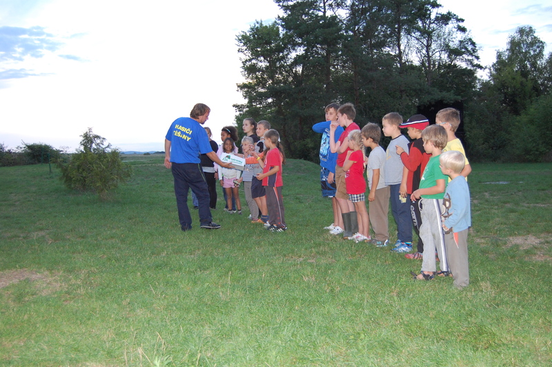 Šlo o úkoly požární všestrannosti, které trénují mladí hasiči, některé pak i mladí táborníci v Robinsonu. Zbytek jsme doplnili o úkoly pro odlehčení, které s vědomostmi neměly co do činění. Děti si tak mohly vyzkoušet střelbu ze vzduchovky, orientaci mapy, poznávání přírodnin či práci se džberovkou, ale také se pobavit při skoku v pytli, hodu na cíl nebo přitahování autíčka na provázku. Ti, kdo zrovna čekali na start své skupinky, si krátili dlouhou chvíli na skákacím hradu.