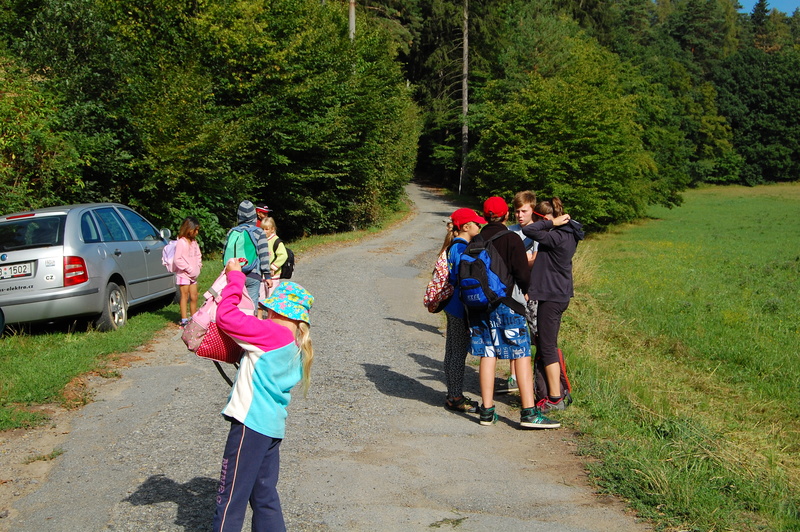 Po přejezdu do vesničky Mokrá-Horákov vydali jsme se po turistické trase směrem k Hostěnicím, kde se letos bude odehrávat prvá část Plamene – závody požárnické všestrannosti (ZPV). Stihli jsme i zkontrolovat, zda voda v hostěnickém propadání opravdu propadá. Propadá. Naštěstí nepropadl nikdo z nás a tak jsme v horkém dni mohli při konzumaci zmrzliny obdivovat třeba i kudlanku nábožnou. Z Hostěnic vedla ještě dlouhá cesta až na chatu Jelenici, kterou nám místní skauti ochotně na poledne propůjčili jako místo našeho oběda. Všichni jsme se podepsali do jejich návštěvní knihy a dle instrukcí se chodili střídavě napít do jedné či druhé studánky, abychom konečně vyřešili záhadu ve které je chutnější voda. Protože jsme skutečně zodpovědní, podařilo se nám i otestovat voděodolnost bot a ponožek. Netěsní. A chutnější voda je ze studánky spodní.