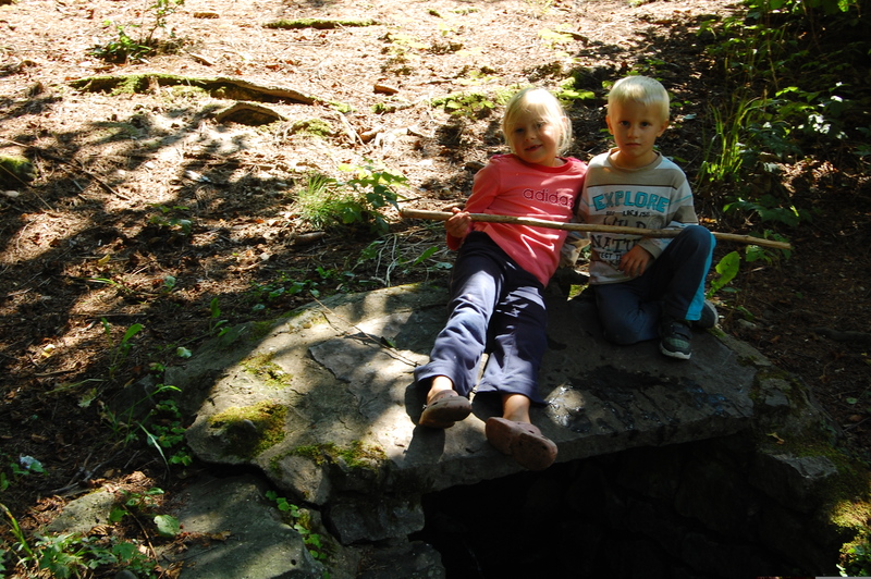 A protože celý pochod nebyl jen o pochodu, ale i o procvičování orientace, zadařilo se nám najít i nádherný poklad v podobě krabice se zmrzlinou. Po obědě a v horkém dni báječný dezert! Anička si ochočila čmeláka. Cesta byla ještě opravdu dlouhá, ale zajímavostí, jako je hrad Vildenberg nebo krásně zpracovaná naučná stezka dokonce i s vodopádem, neubývalo.