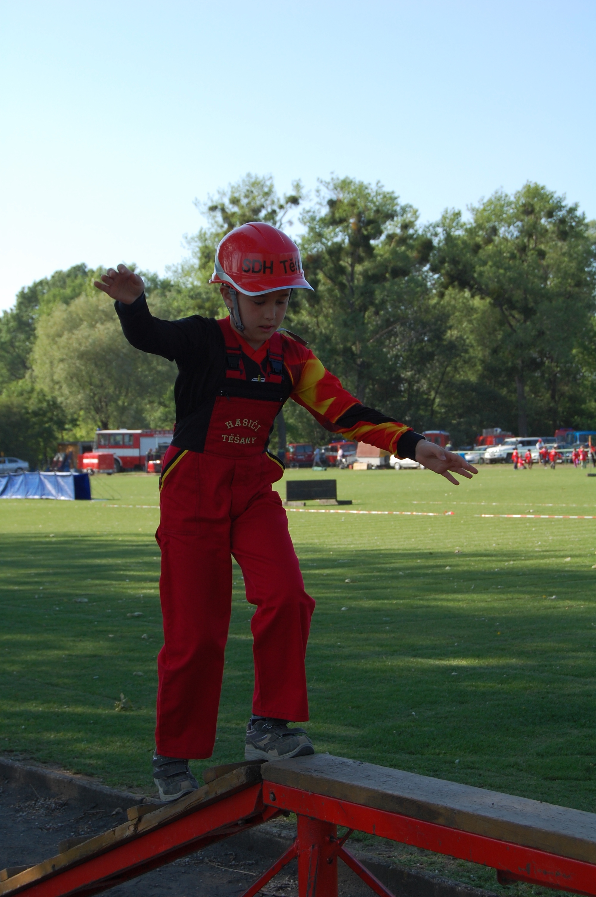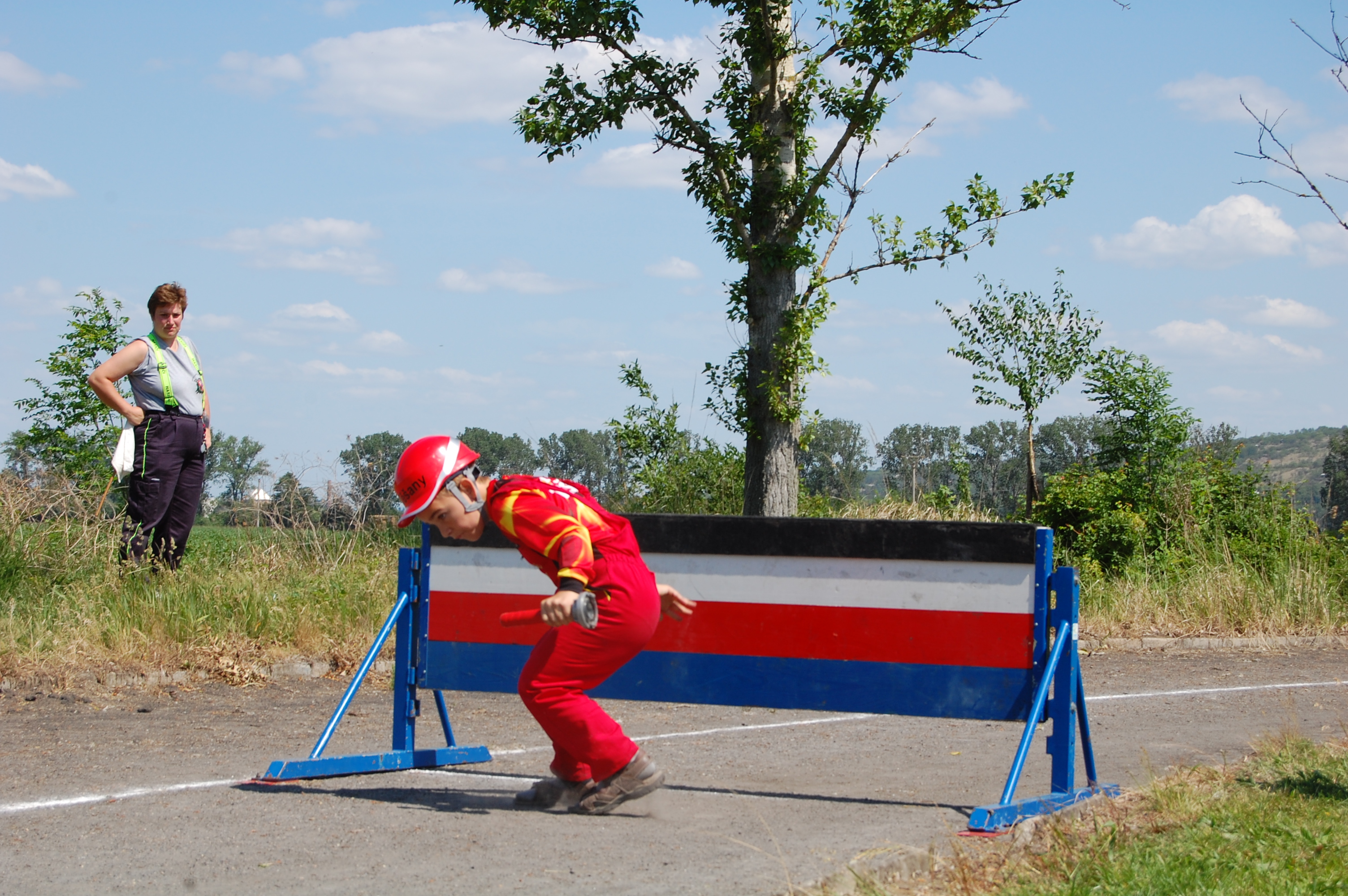 Soutěžilo se v disciplínách štafetový běh s překážkami na 400m CTIF a v požárním útoku. I přes nepřízeň počasí byla soutěž zahájena a my jsme na první disciplínu nastoupili hned jako druzí v pořadí. I přes to, že to pro nás byla novinka, zaběhlo naše družstvo velmi dobrý čas 2:08 min. a my tak byly v těsném závěsu za nejlepšími. Bohužel jsme při rozmisťování závodníků na trati udělali chybu, na kterou nás nikdo z rozhodčích před závodem neupozornil, a my tak byly dodatečně diskvalifikováni. Zklamání bylo veliké, ale my se museli soustředit ještě na druhou disciplínu, požární útok. Zde jsme nastoupili opět jako druzí a děti si vedly opravdu velmi dobře. Bohužel nás trošku zradila technika, ale i tak jsme dosáhli čas 52sec.