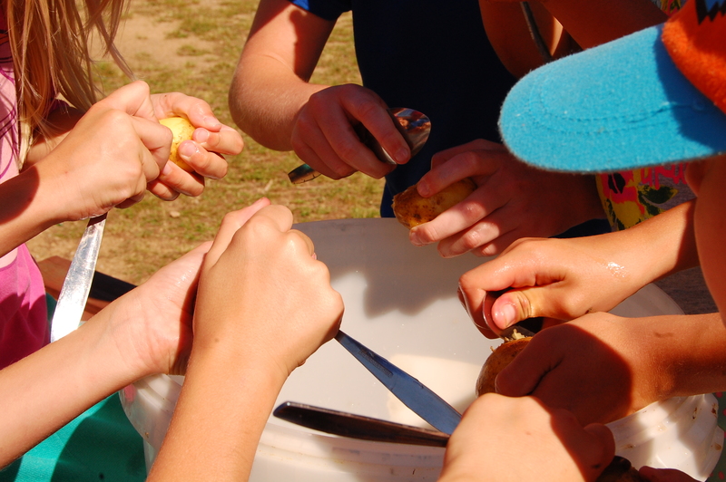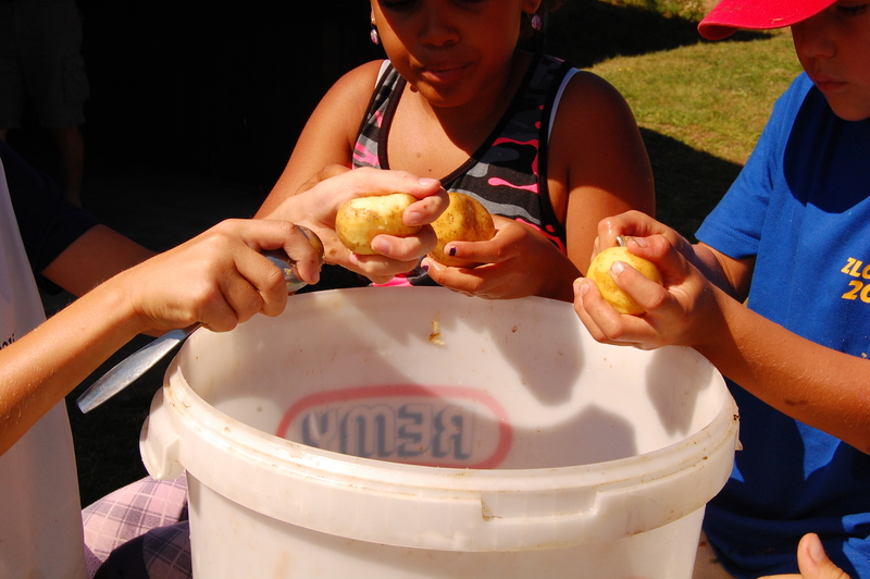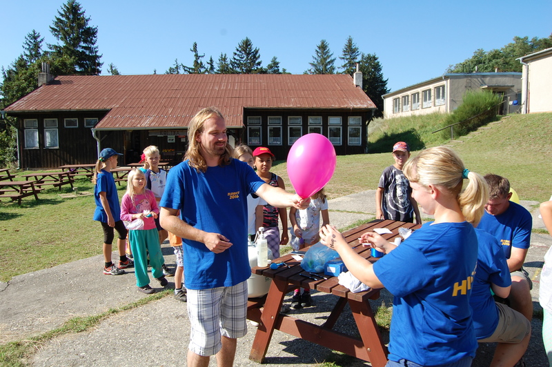Po rozcvičce a snídani pokusili jsme se kontaktovat okolní svět pomocí balónků s héliem, pod které jsme přivazovali malůvky a osobní vzkazy doprovázené textem odkud balónek vzlétl (včetně GPS souřadnic) a komu patřil. Jsme moc zvědavi, zda se někdo ozve, že náš balónek našel. Po obědě oblíbená soutěž ve škrábání brambor lžící – jde to a jde to dobře! Po mírné kalkulaci kdo, kdy s kým, odvezli vedoucí osazenstvo Zlobice na koupání do Skaličky. Místní mají bezva obecní koupaliště. Pravda, asi jsme jim trochu udělali rozruch v občerstvení s požadavkem na bezmála 30 párků v rohlíku. Následovala už jen cesta domů – tentokráte po svých. Cestu dlouhou asi 6km nám zpestřovaly různé úkoly, na které jsme trénovali den předchozí. Některá stanoviště se vůbec nepodařilo nalézt, nicméně i tak jsme si všichni zaslouženě pochutnali na večerních bramboráčcích. Kousky brambor pak i někteří poznali a hrdě se k polednímu škrábání brambor hlásili. Tradiční zpěv a večerka tentokráte byla o trochu dříve, dlouhá cesta nás zmohla.