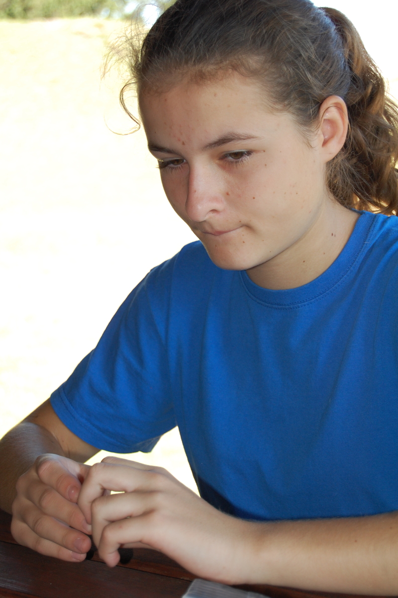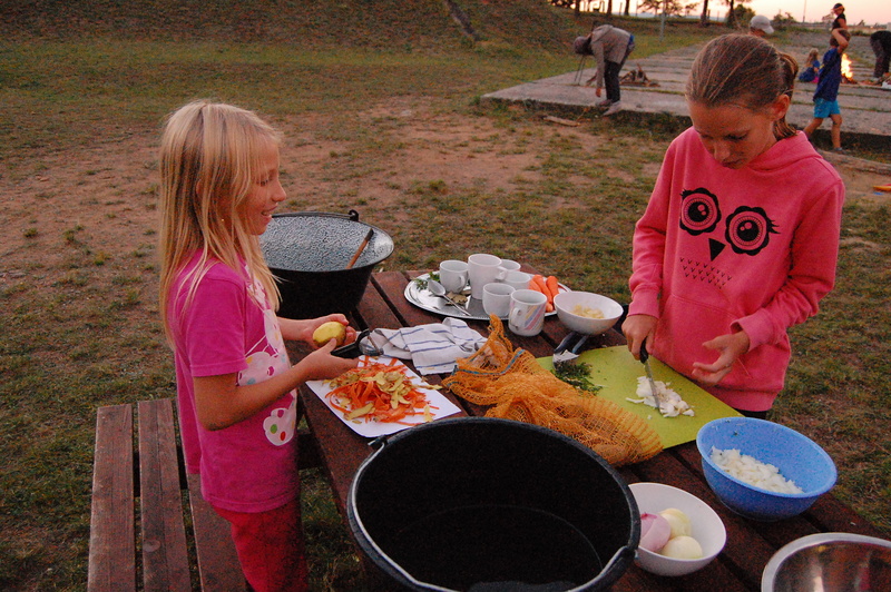 Odpoledne přišel úkol nejočekávanější – kotlíkové guláše. Každé družstvo obdrželo papír a tužku a sepsali si své požadavky na materiální vybavení pro přípravu kotlíkového guláše. Chvilku sice trvalo, než všichni došli na to, že pro kotlíkový guláš je nepostradatelným prvkem kotlík a oheň, ale zadařilo se. Sám neumím posoudit, které družstvo vyhrálo a osobně si myslím, že tato „soutěž“ ani neměla být hodnocena, protože každý z gulášů byl jiný a každý byl naprosto fantastický. V průběhu vaření nás navštívila také místní dobrodinec Mirka Marešová a ukázala nám, jak se plstí a přede ovčí vlna, obé jsme si mohli i vyzkoušet. Zážitku z chuti napomohl ještě i zážitek další – orientace v prostoru a tmě. Úkolem každého jednotlivce bylo po provázku projít temnou místností, kde byly v cestě zákeřně nastavené různé kusy nábytku, náčiní požárního sportu a dokonce i zachraňovaná osoba, kterou nakonec musel zachránit až vedoucí Milan. Hra se protáhla až do pozdních nočních hodin a tak jsme si na druhý den trochu přispali.