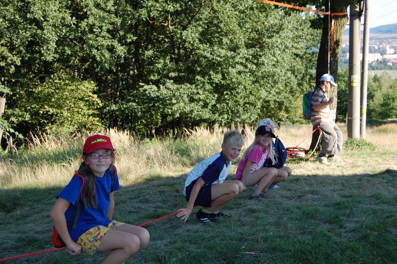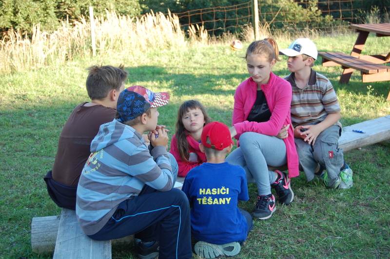 Protože vedoucí nebyli výkonem z předchozího dne spokojeni, udělali jsme si malé „předkolo“ ZPV. Trénink byl znát, přesto se někteří pokoušeli čísla 158, 155, 150 počítat jako rovnici o třech neznámých a zjistili jsme, že ostrozrak talentů mladých hasičů dokáže identifikovat půl metru vysoký dub v hustém smíšeném lese na vzdálenost i půl kilometru. Po obědě jsme si trasu nakonec prošli všichni hromadně a poučili se z chyb a úspěchů. Lano a zákeřný rýmovací úkol zvládli všichni na výbronou!