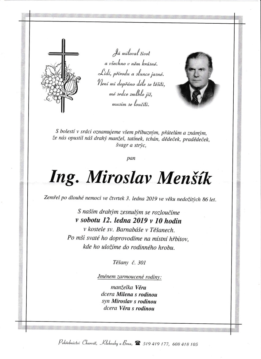 Úmrtí Ing. Miroslava Menšíka