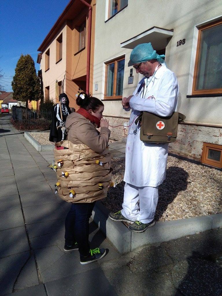 Zveřejněno 26.02.2017V sobotu 25.2.2017 prošel naší obcí tradiční ostatkový průvod. Letos s koněm i muzikou navštívili jsme všechny domy a pozdravili v netradičním odění naše sousedy. Letos jsme se v předlouhé cestě dočkali i pomoci nečekané - dorazily sestřičky z SDH Nosislav, které nemocným pánům opatrným polibkem léčily neduhy!